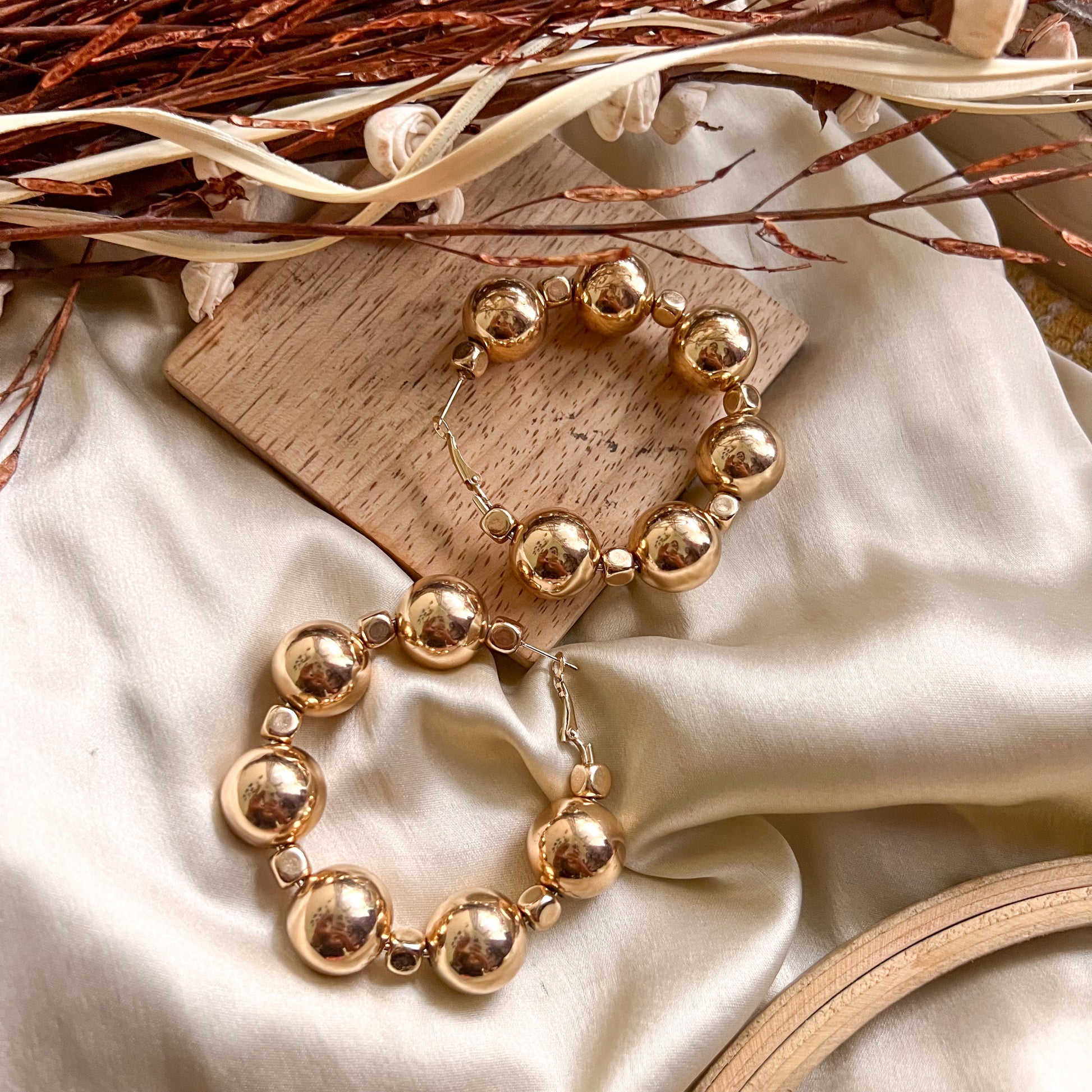 Add a touch of elegance to your office wear with our Angoori Hoops. These hoops feature charming grape-like accents in a luxurious golden tone. Perfect for any professional setting, these hoops will elevate your style and add a subtle touch of sophistication. Don't wait, treat yourself to these stunning hoops today!