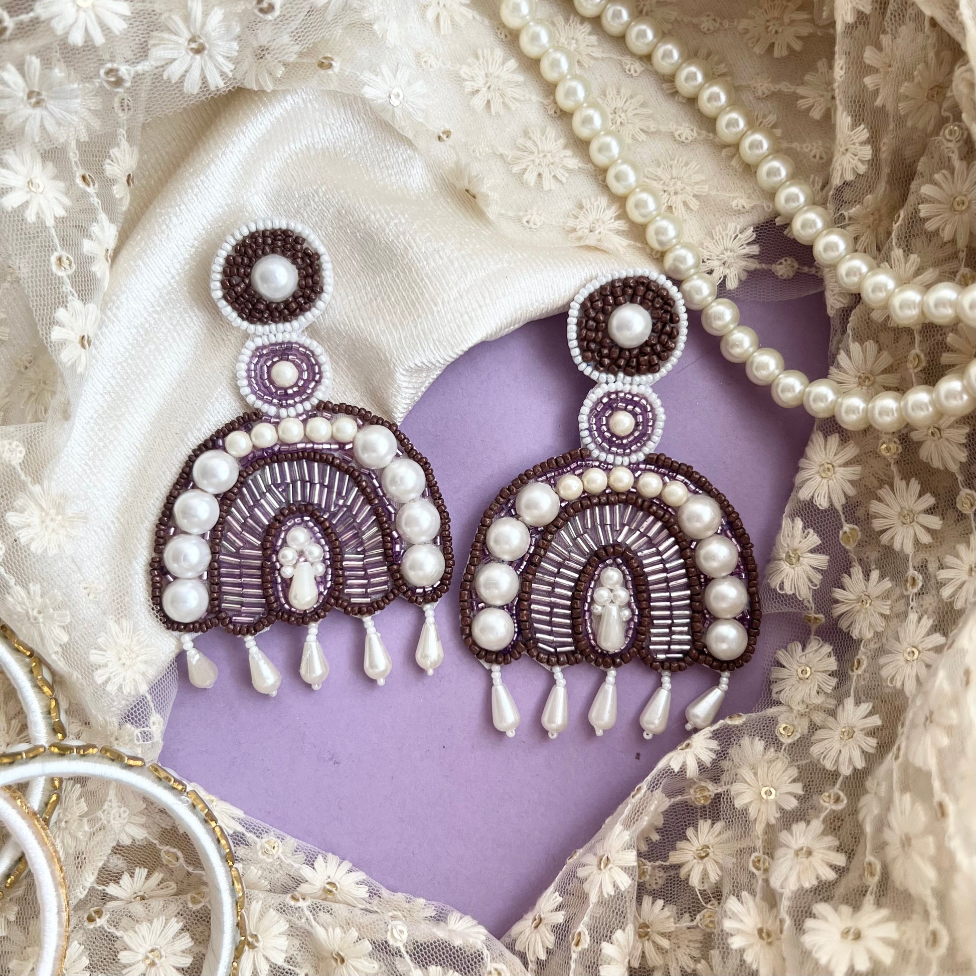 Crafted with precision and love, these lightweight hand-embroidered earrings blend whimsical artistry with everyday comfort  a stellar choice for festive looks or statement-making daywear.