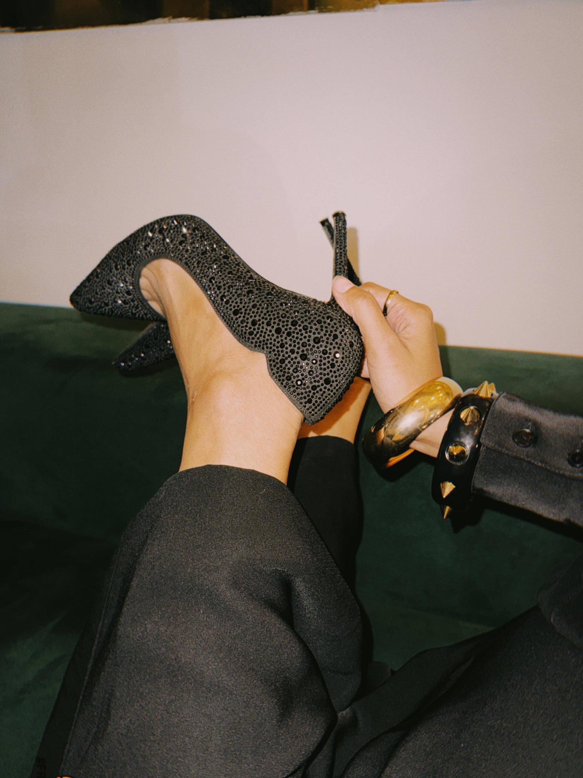 Colour: Deep jet black resin complemented by metallic studs in a contrasting finish, creating a standout look.