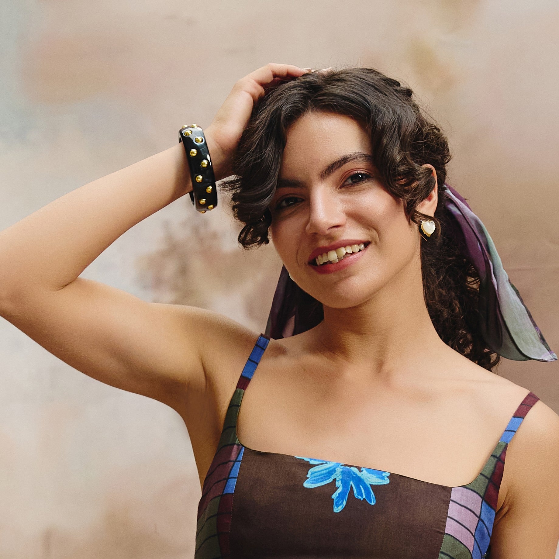 Alex Black Resin with Studs Bracelets, is crafted from high-quality black resin and adorned with metallic stud accents, offering a sleek, contemporary look with a touch of attitude. Whether styled solo or stacked, it’s the perfect accessory to elevate your street style or add contrast to classic outfits.