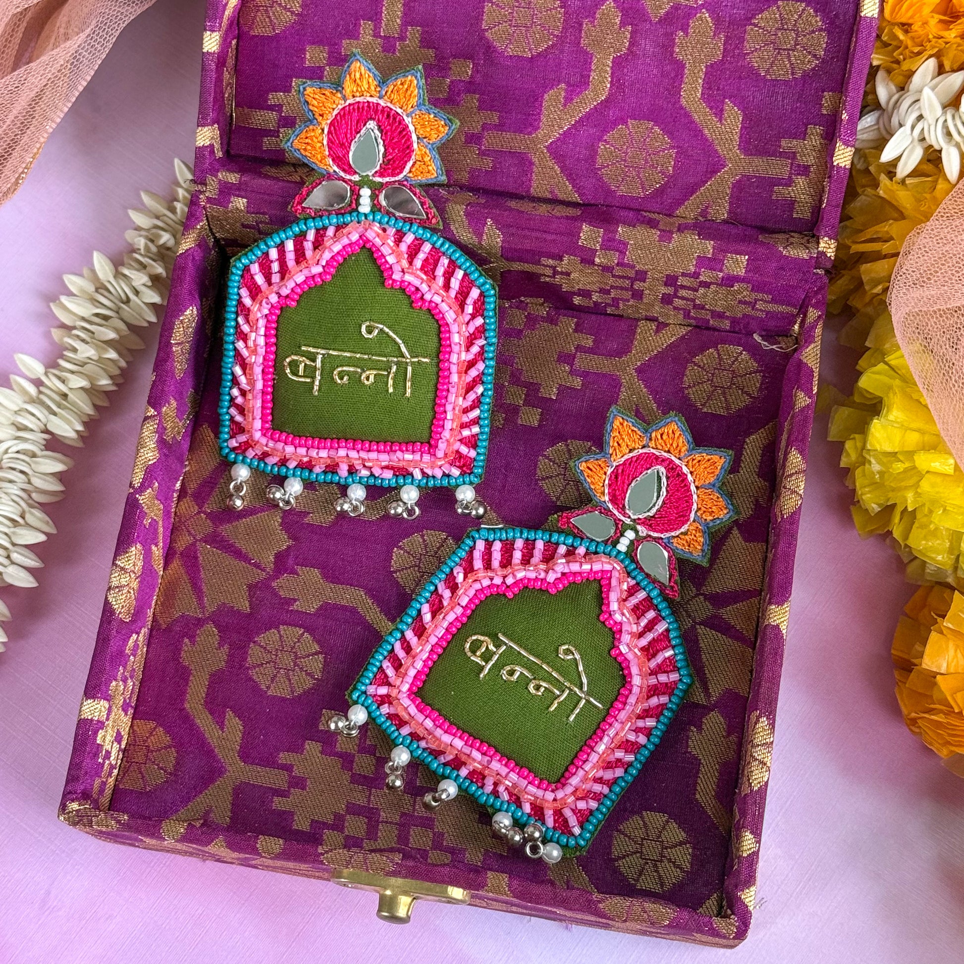 - Style: Traditional statement earrings with a vibrant ethnic touch, designed especially for brides-to-be (“Bannoâ€Â) to complement festive attire with flair and elegance