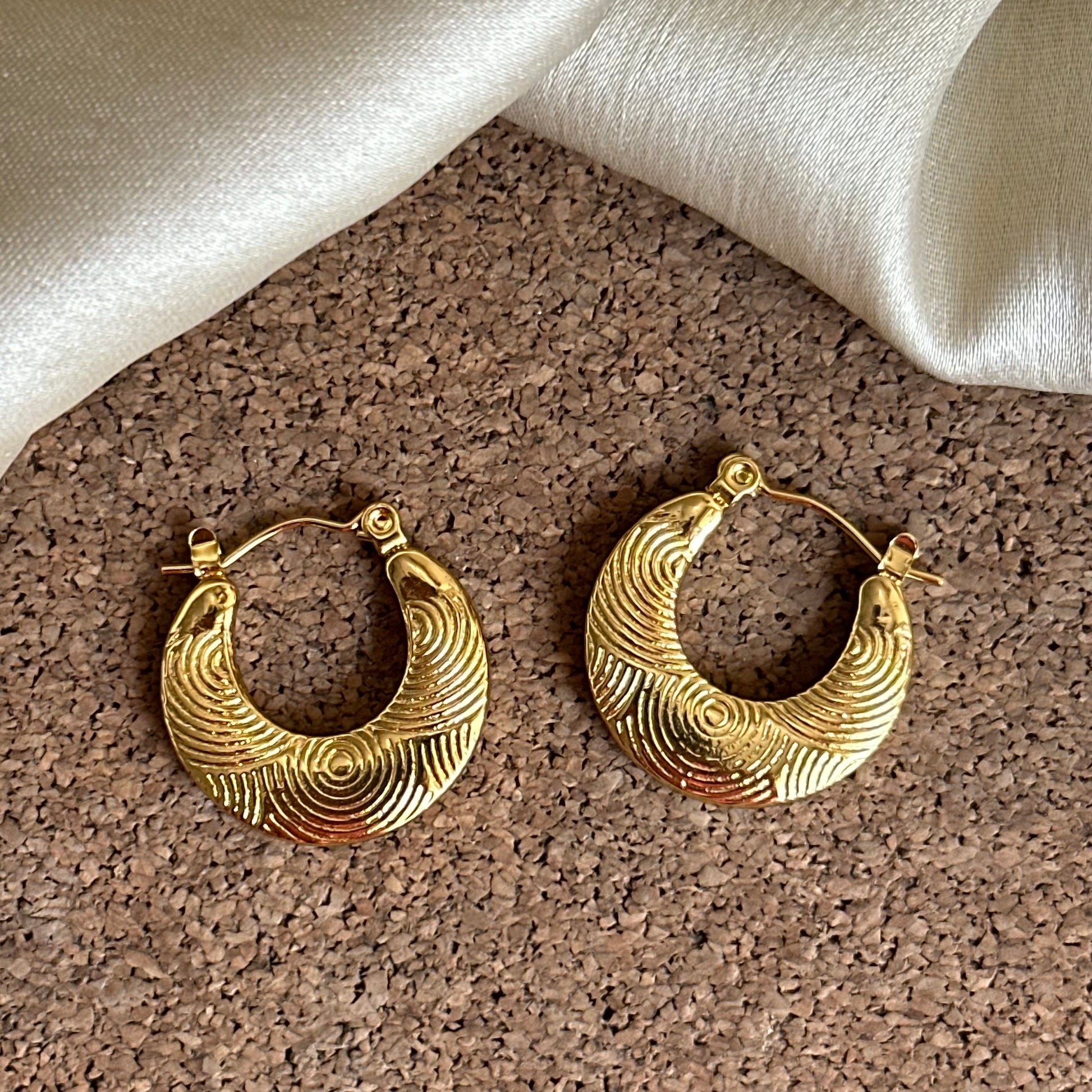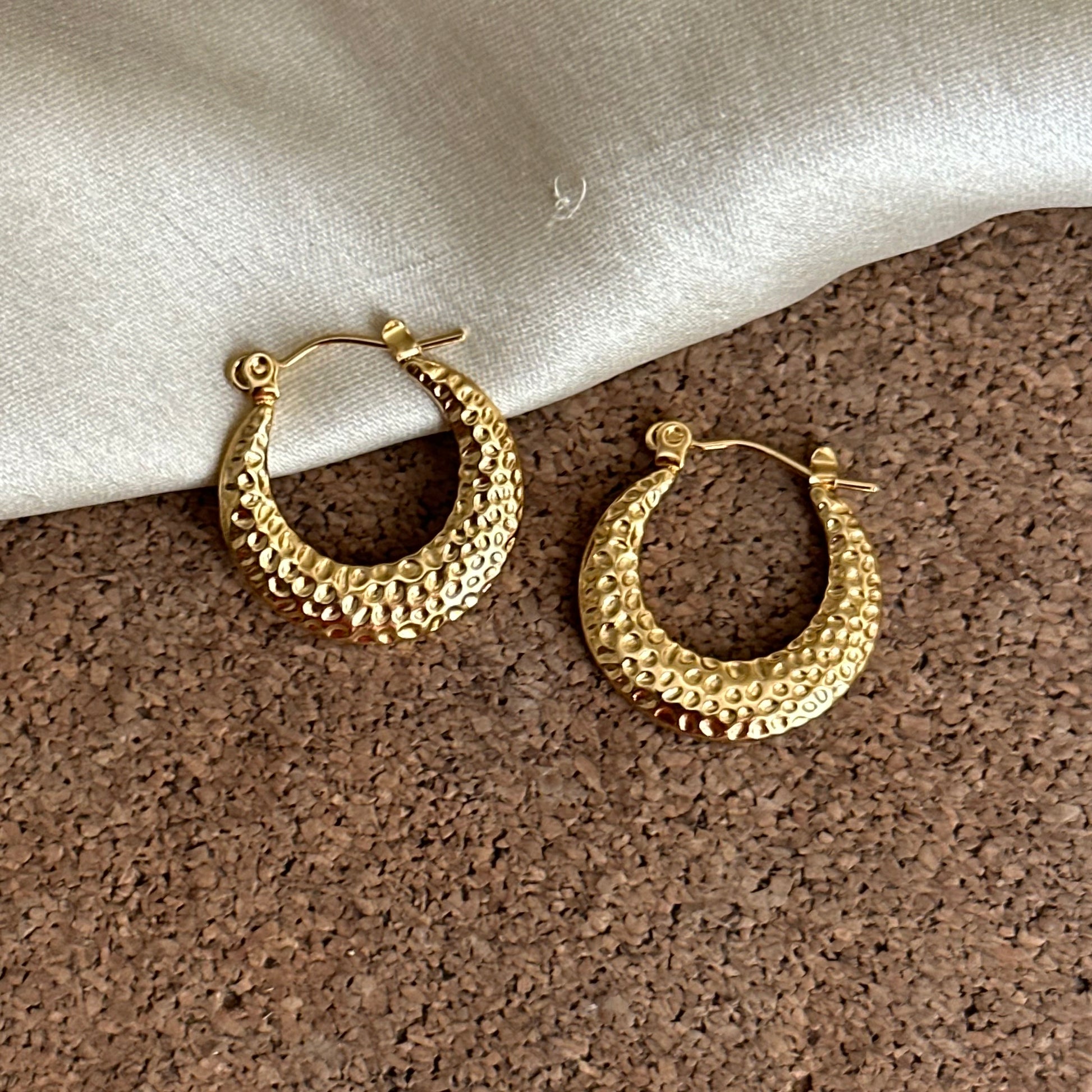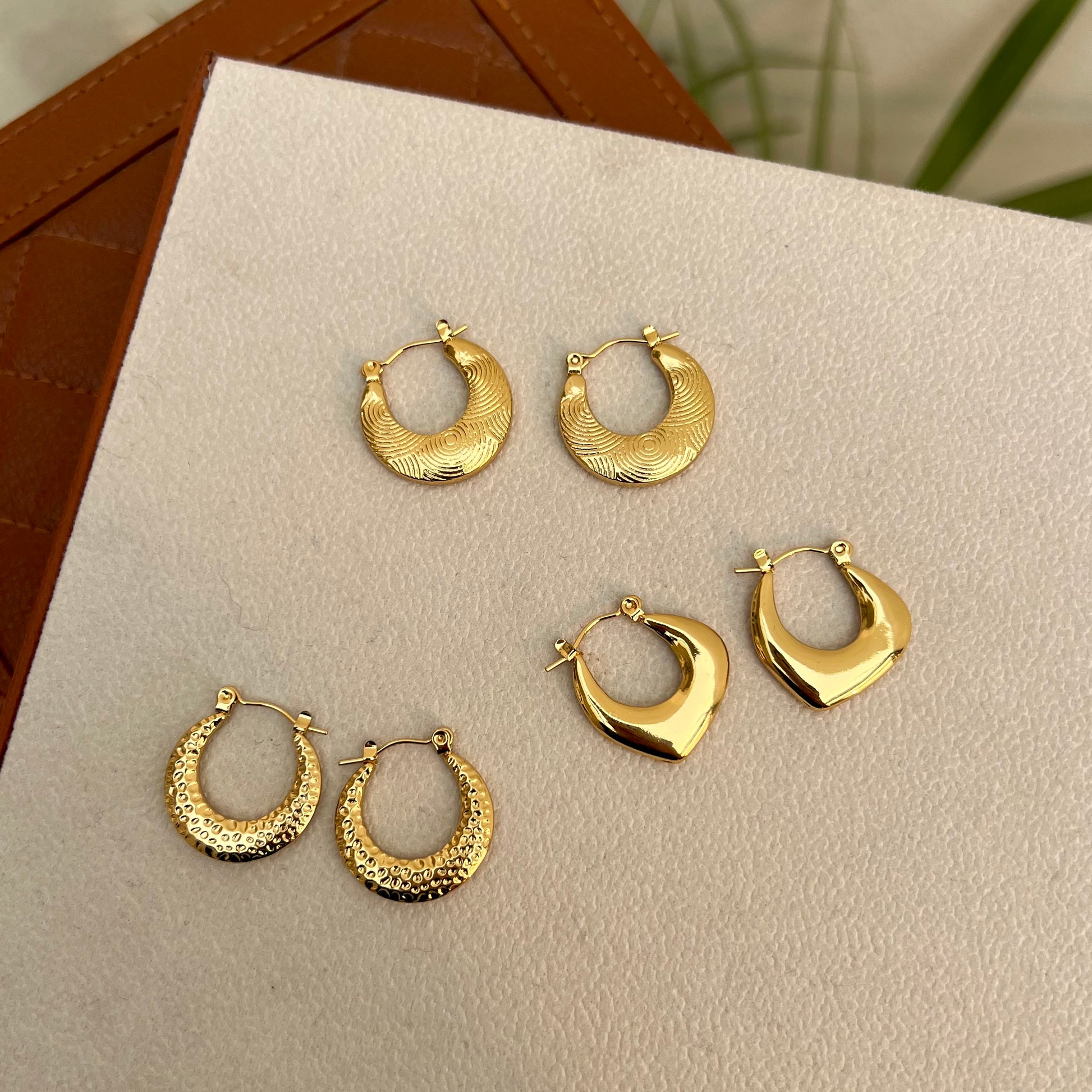 Boho Glam Gold Plated Metal Hoops – Tini Mini, Tipsy & Twilight 18KT Gold Plated Stainless Steel Hoops, a curated trio where bohemian charm meets golden elegance. This versatile set features three distinct hoop designs, each plated with luxurious 18KT gold to bring radiant sophistication to your everyday look. Whether you're layering for a bold statement or keeping it minimal, these hoops offer something for every mood and moment.