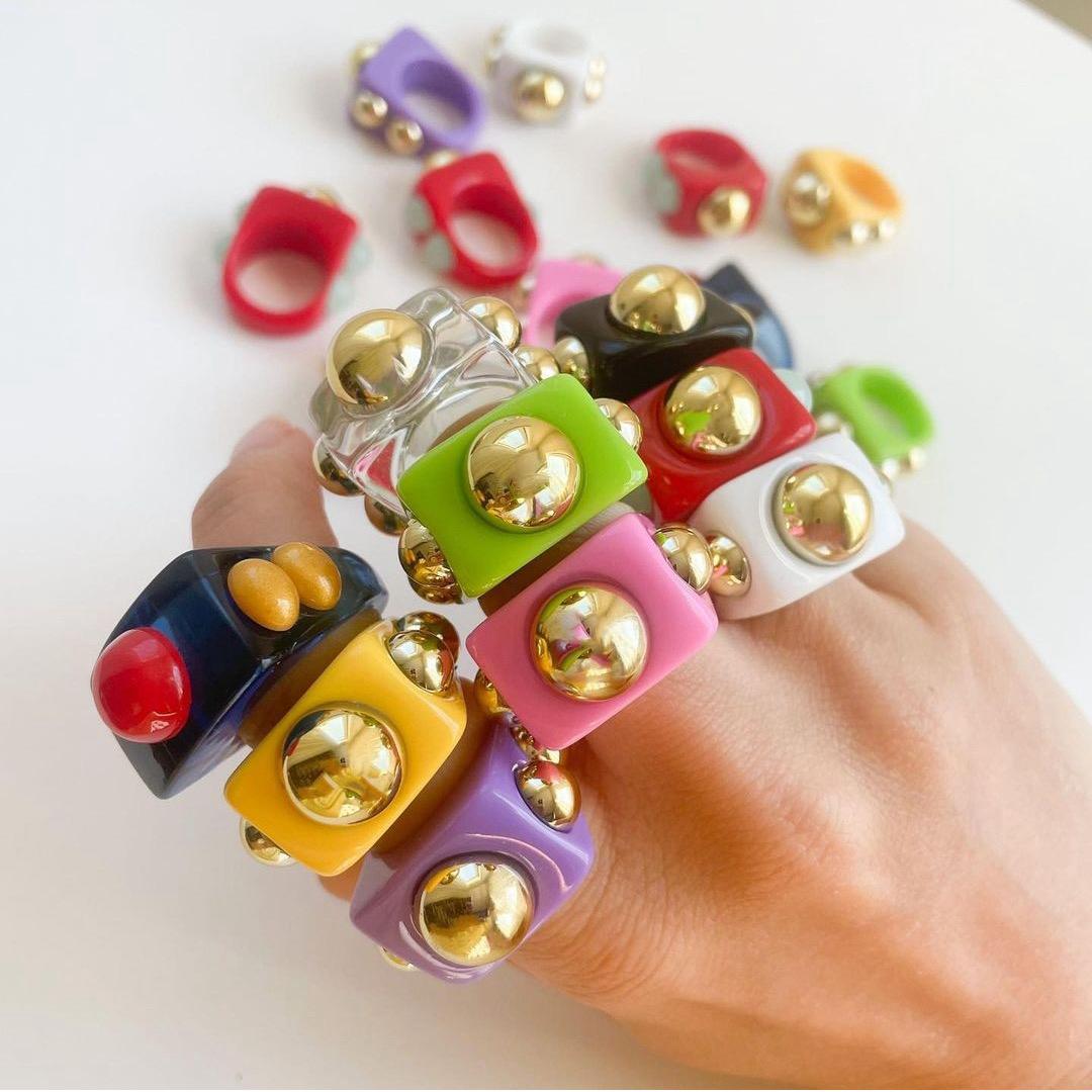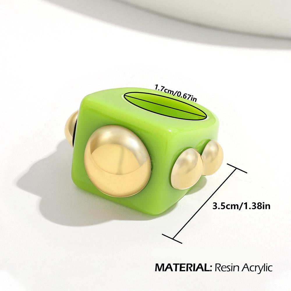 Turn heads with the Colour Pop Chunky Resin Ring, a vibrant accessory made to stand out. Crafted from durable, lightweight resin and adorned with glossy gold-tone metal studs, this eye-catching square-shaped ring combines bold color with playful, modern design.