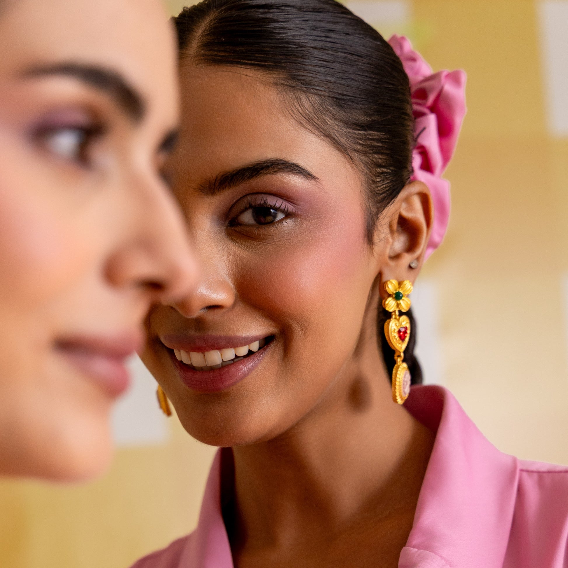 Design: Features delicate heart and flower motifs, creating a timeless vintage look