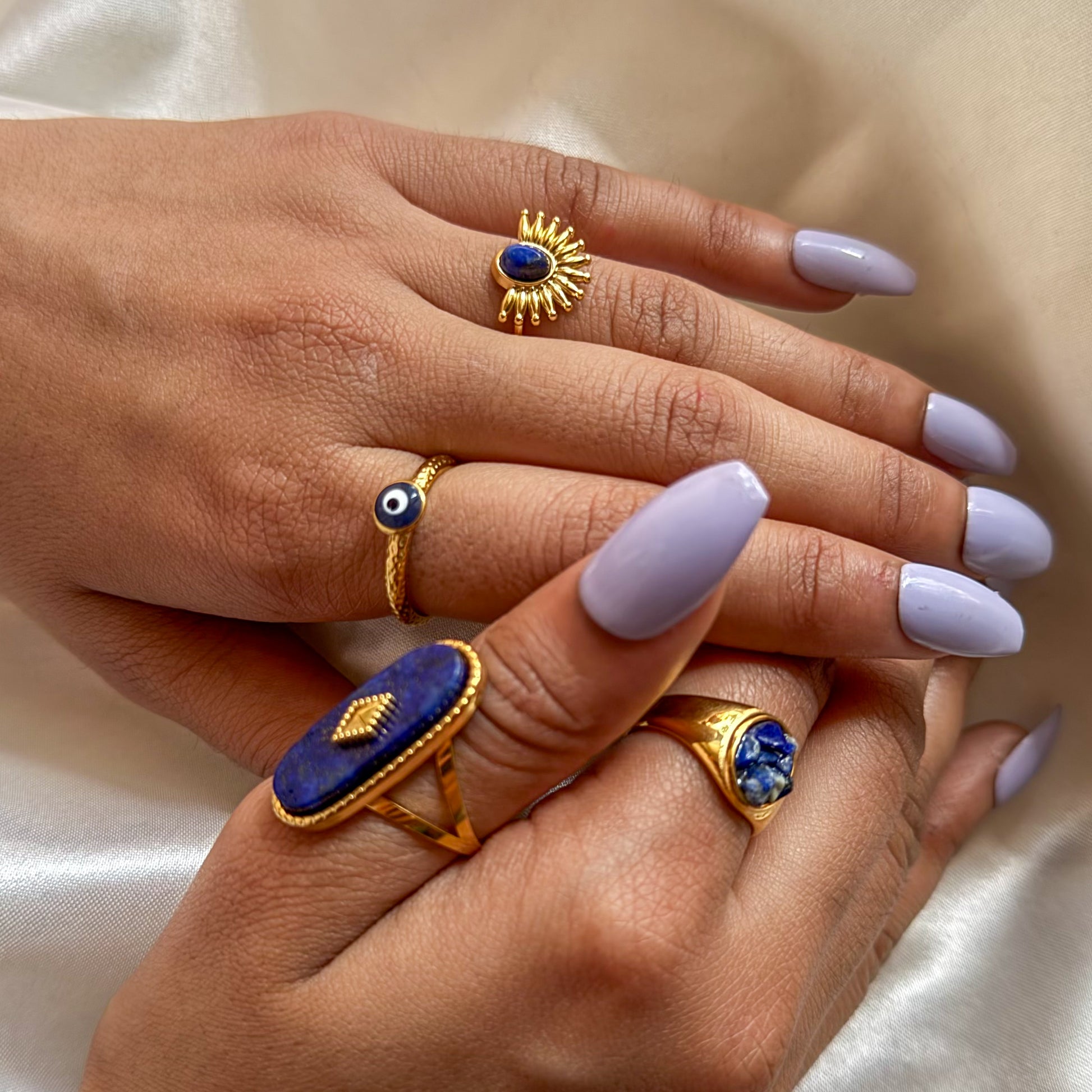 Each ring features the Evil Eye motif, known for its protective qualities, helping to guard against negative energy. The combo set offers versatility, with both adjustable and non-adjustable rings that can be worn individually or stacked for a bold, layered look. Whether you wear them together for maximum impact or separately for a more subtle effect, this set will add a touch of mysticism and empowerment to your style.