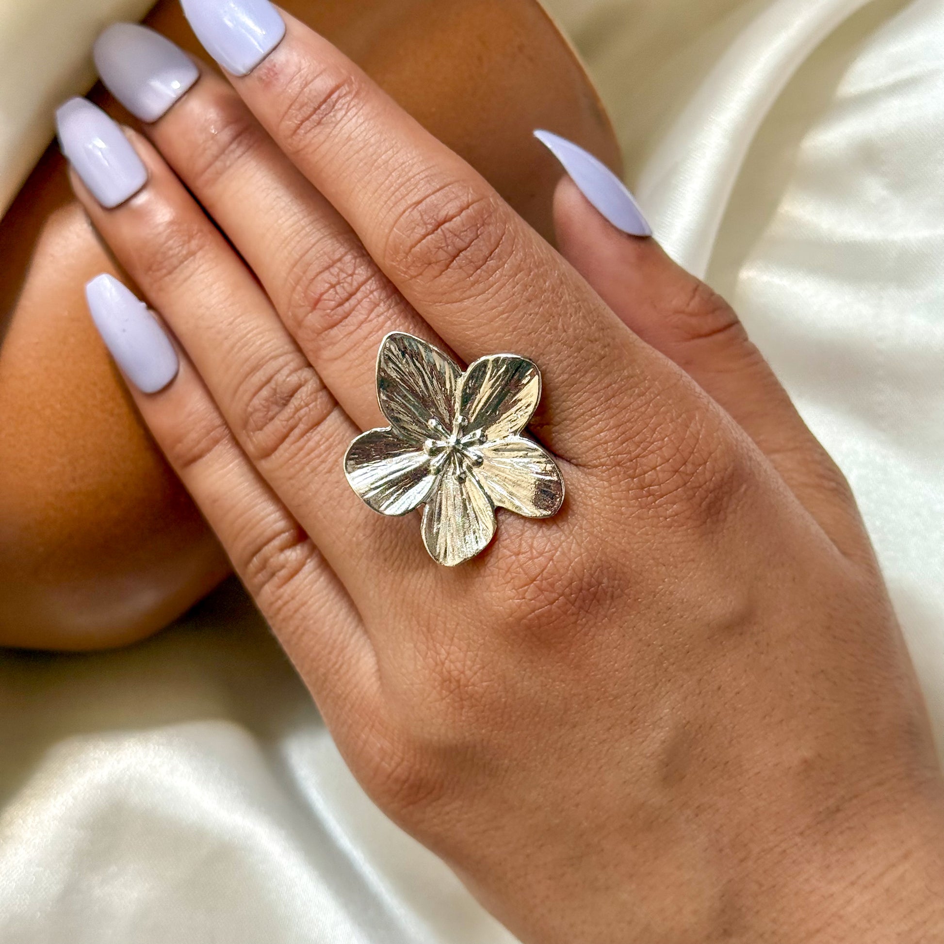 The Statement Flower Silver Ring is a bold and elegant accessory that adds a touch of nature-inspired beauty to any outfit. Crafted with a stunning silver finish, this ring features a detailed, flower design that commands attention. The adjustable band ensures a perfect fit, offering both comfort and style. Whether worn as a standalone piece or paired with other rings, the Statement Flower Gold Ring makes a striking addition to your jewelry collection, ideal for both everyday wear and special occasions.