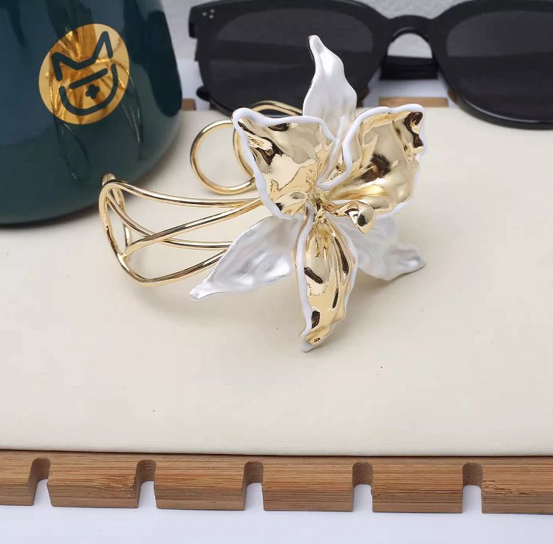 Turn heads with this exquisite sculptural floral cuff—a breathtaking, oversized statement piece inspired by the delicate yet dramatic beauty of a tropical orchid.