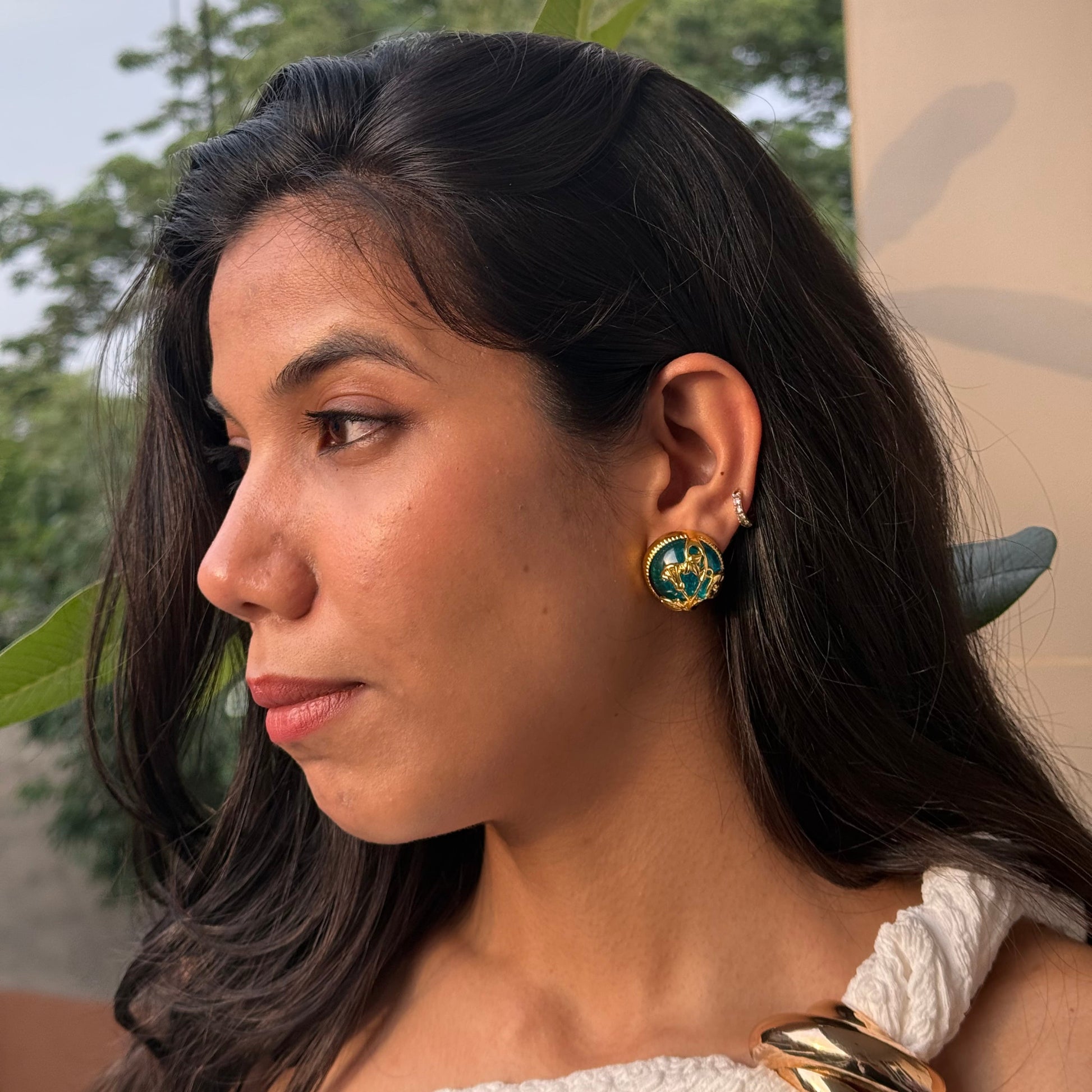 Golden Giggle Alloy Gem Studs are your new favorite pair for everyday sparkle. These gold-toned earrings come with colorful gemstone drops that are light, playful, and super easy to style. Whether it’s a casual outing or a fun night out, they add just the right amount of shine.
