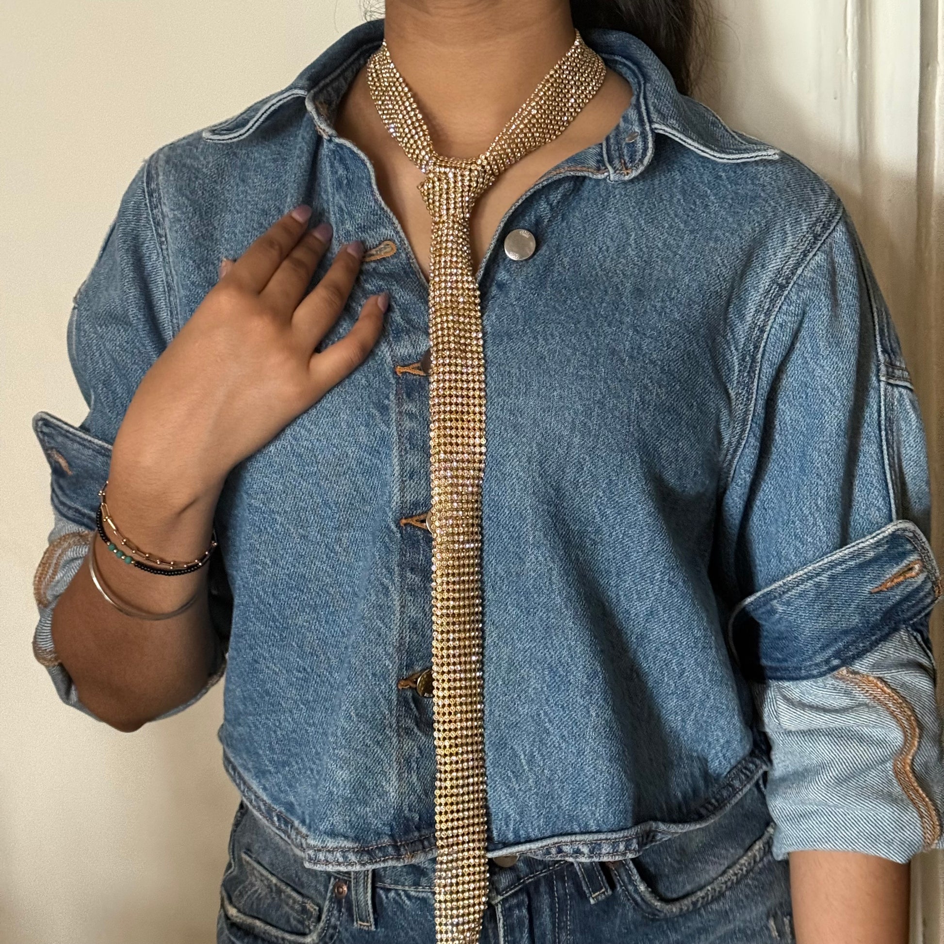 Golden Tie Rhinestone Necklace