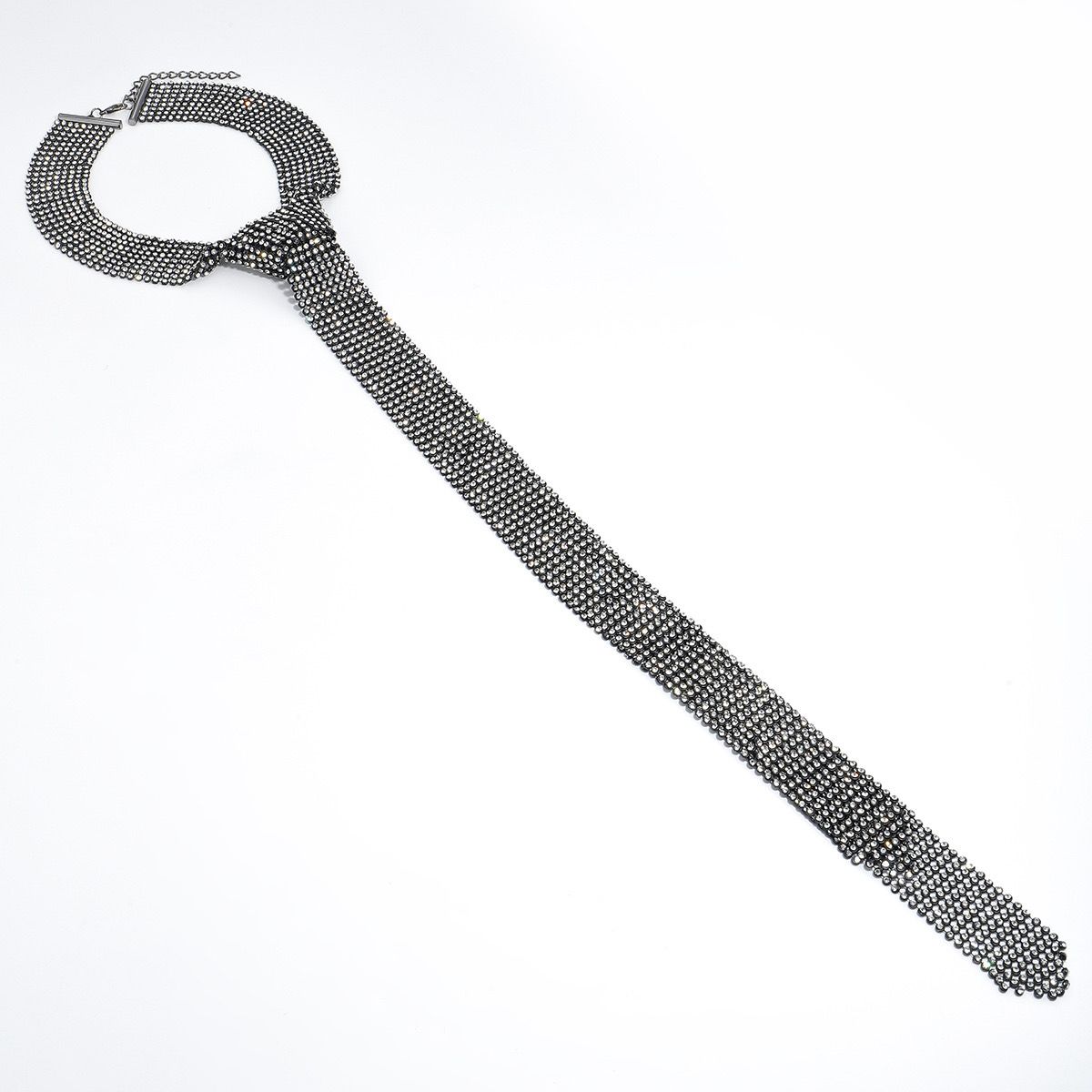 Features: Unique tie-shaped design with cascading rhinestones that create fluid movement and eye-catching shine.