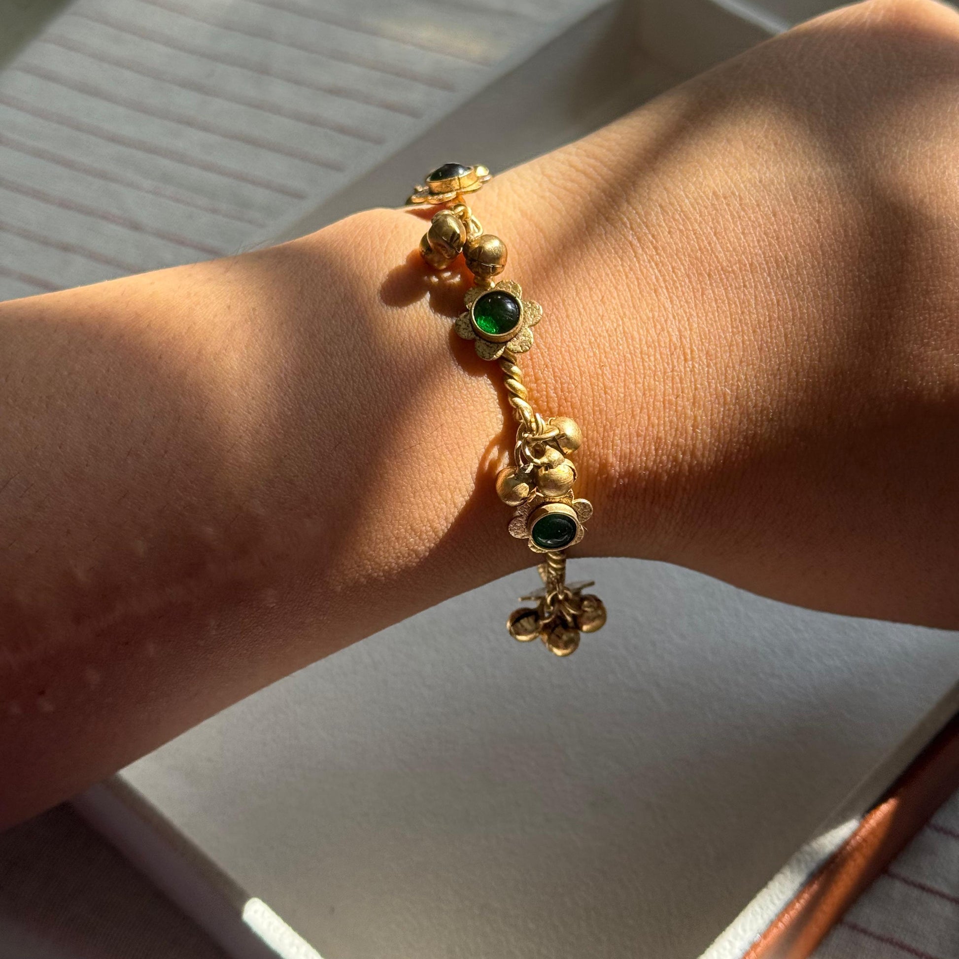 Style: Traditional ethnic bracelet with twisted rope design and floral gemstone accents.