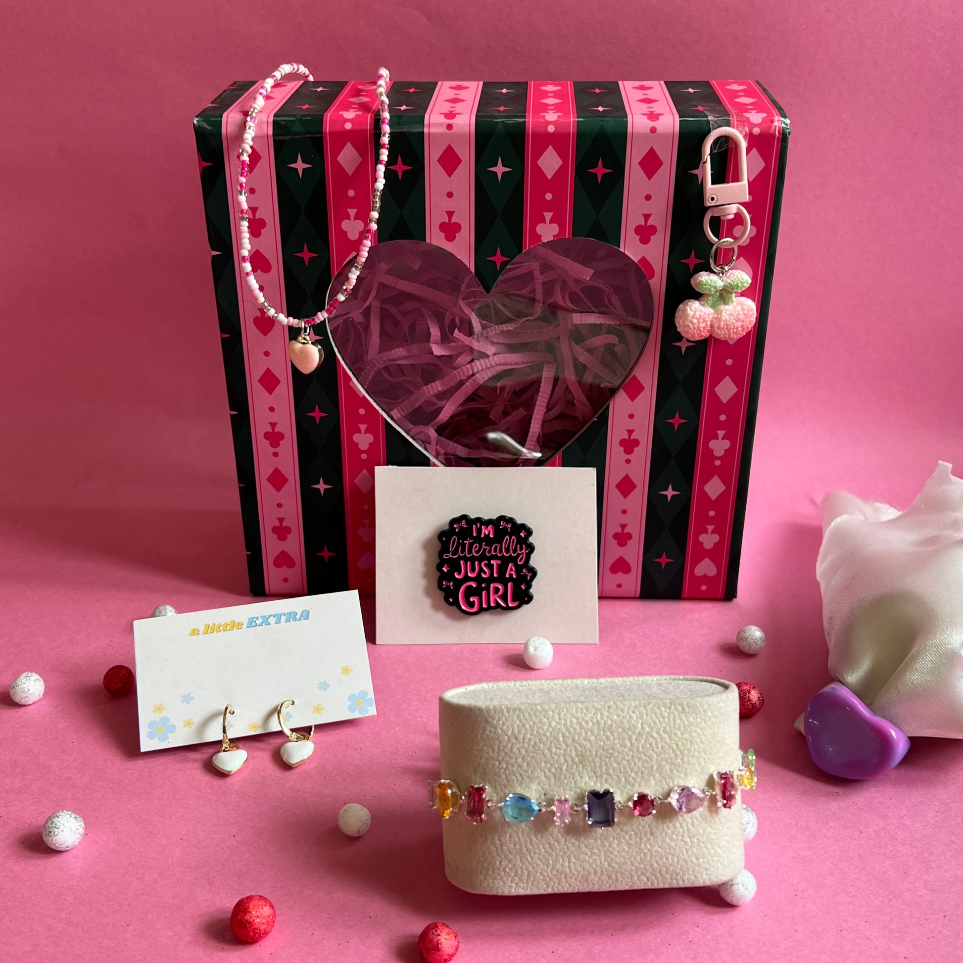 Style: Cute, vibrant, and trendy — a feel-good accessory hamper made for heart lovers and statement girls. 💗