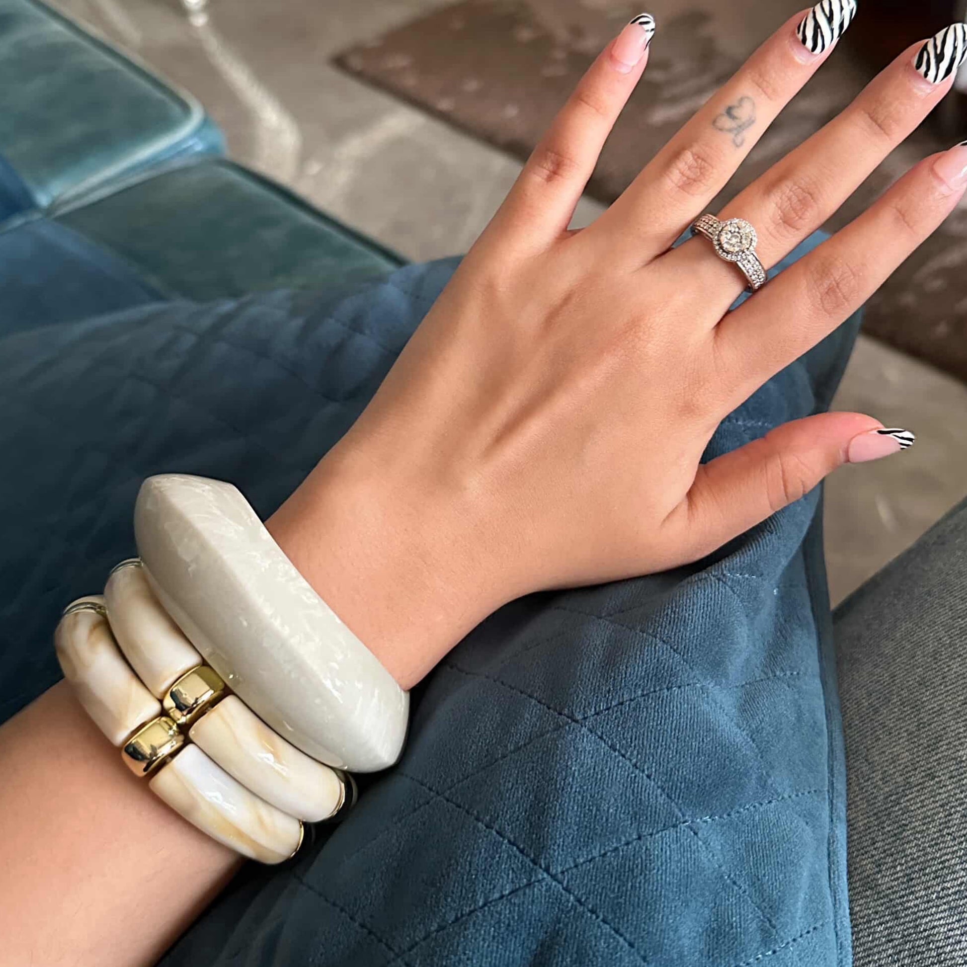 Features: A viral-worthy trio in stunning Cream Acrylic Bracelet & Resin Bangle.