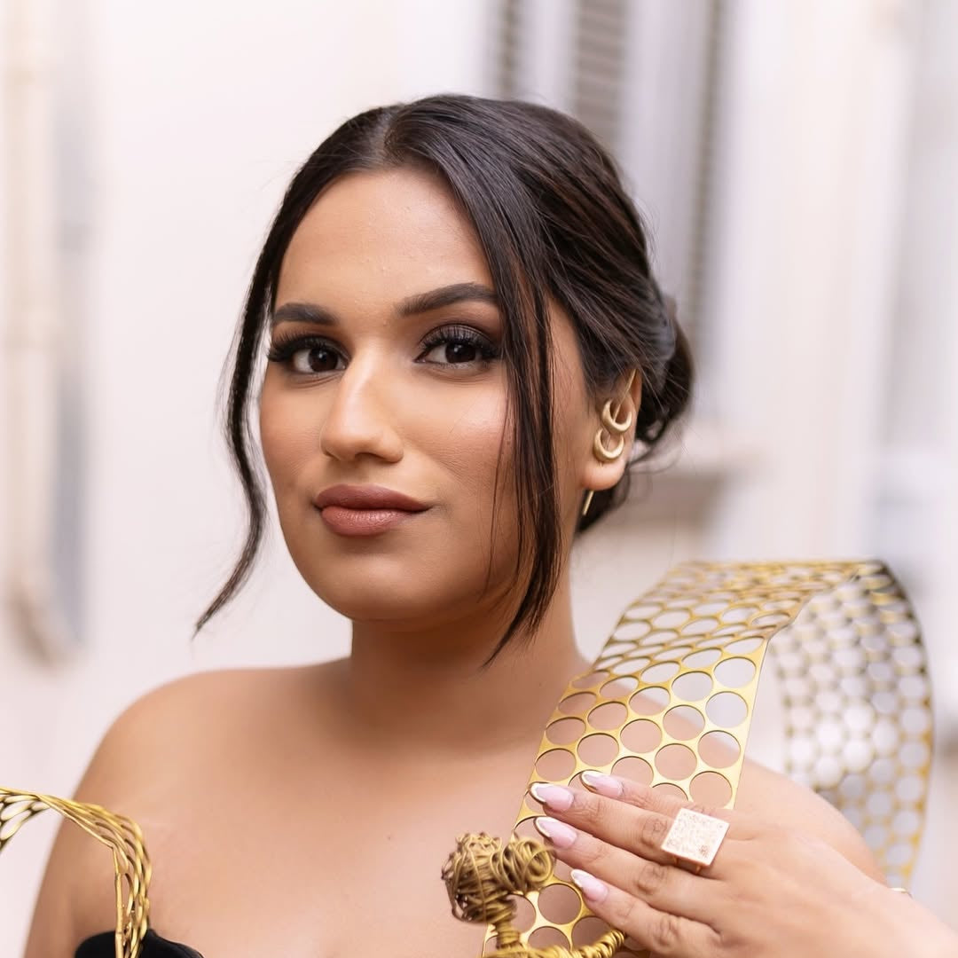 Colour: Elegant brass tone that enhances any skin tone with its earthy richness.