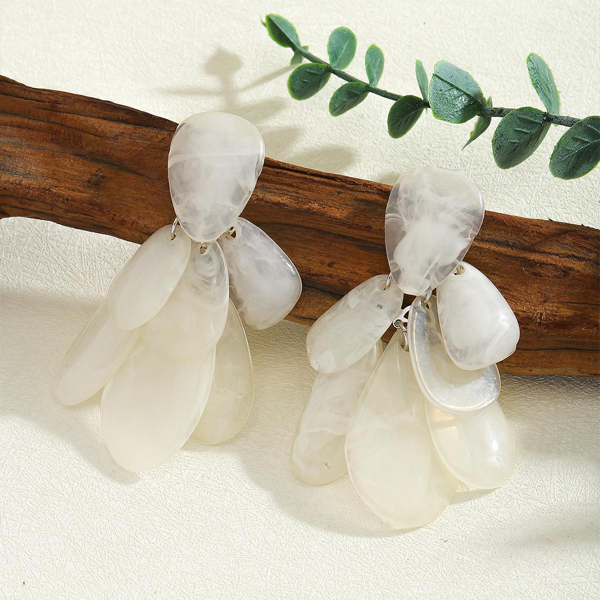 Graceful and ethereal, the Moonpetal Cascade Earrings feature layered translucent petals that flow like moonlight. Crafted with glossy shell-like textures in soft white, they create a fluid, organic silhouette that adds movement and charm to every look. Lightweight yet statement-making, these earrings embody natural elegance with a contemporary twist.