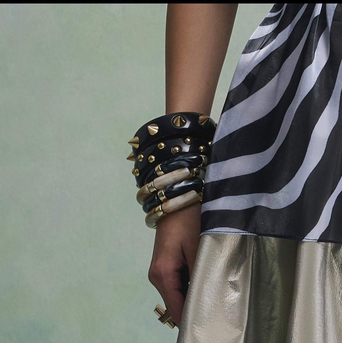 Description: A vibrant set of seven handcrafted resin bangles in striking shades of Cream, Black, Gold. Featuring a glossy finish and a bold, festive palette, this combo adds a playful pop of color to any outfit. Wear them stacked for a statement look or style them individually for a touch of elegance with a twist.