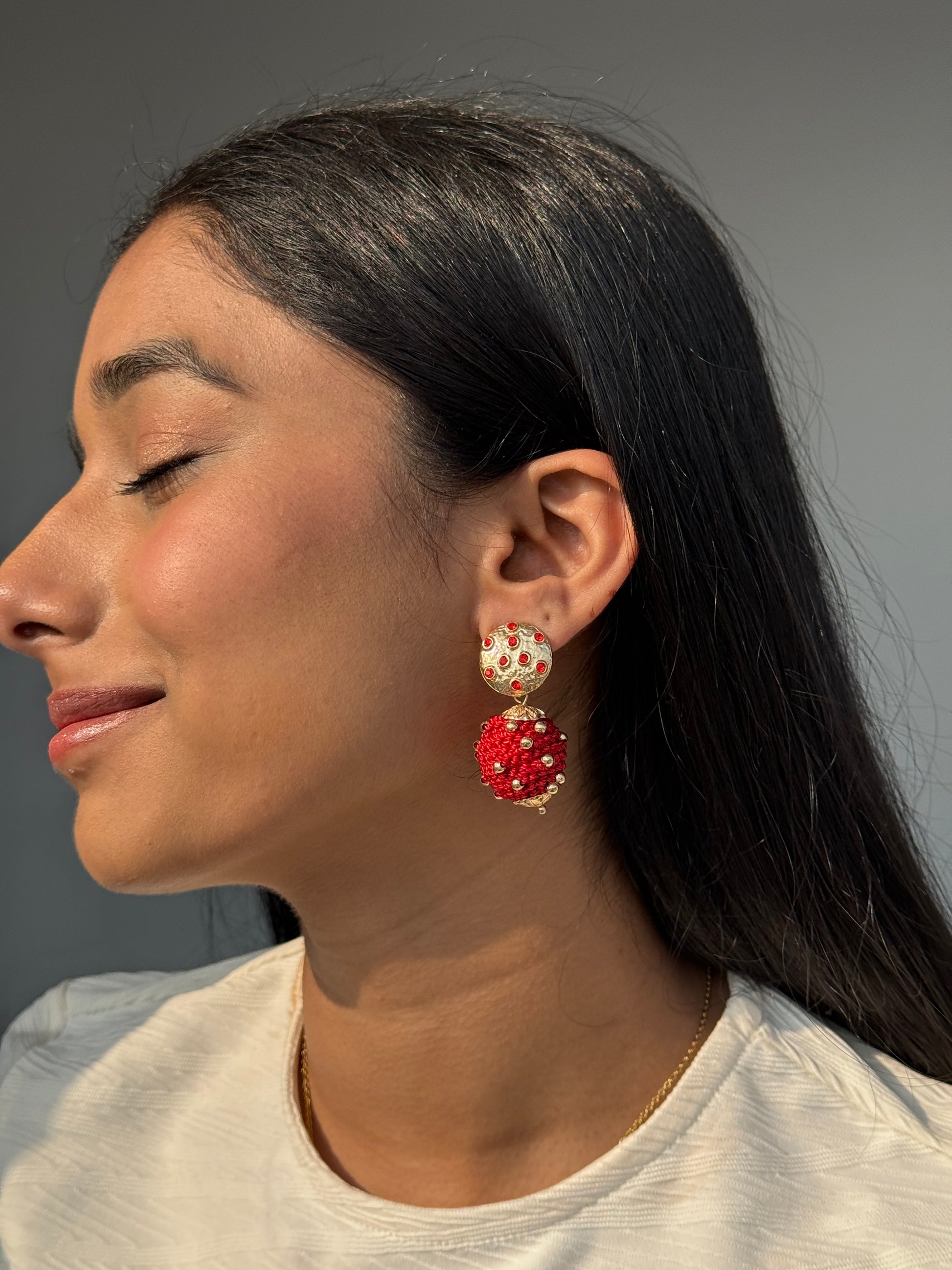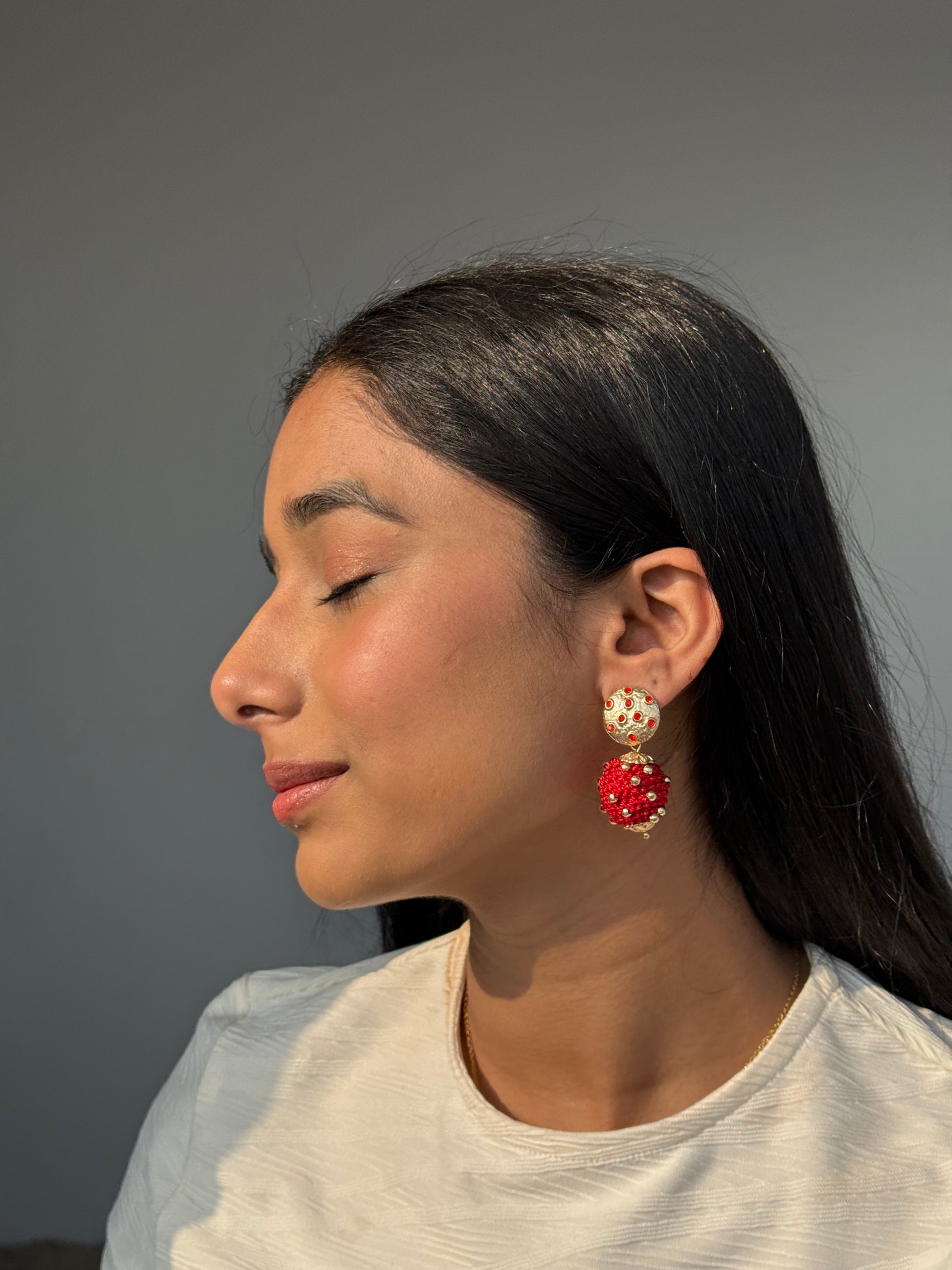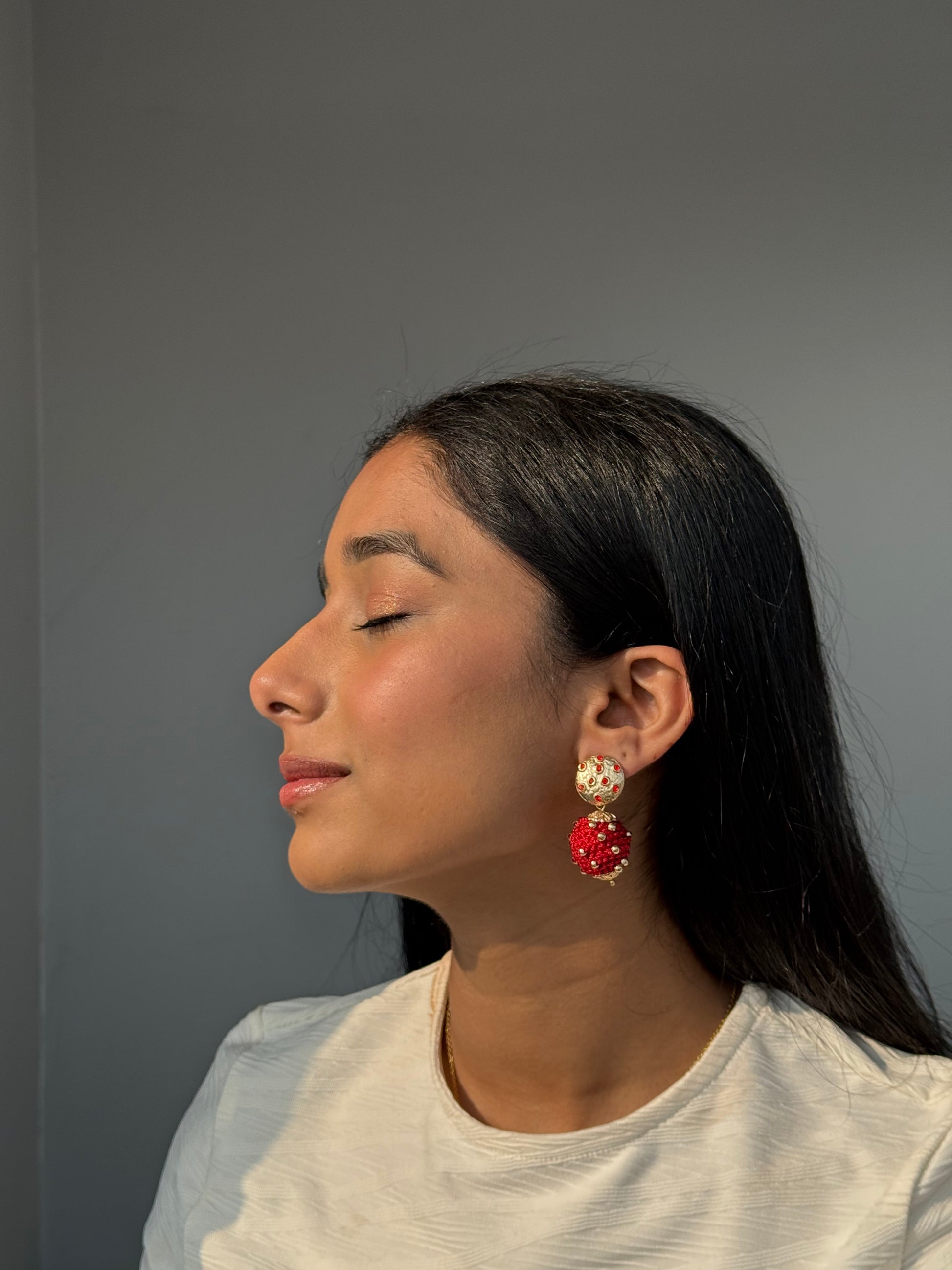 - Vibrant Red Drops: The rich red accents make these earrings a bold statement piece, adding a pop of color to any outfit.
