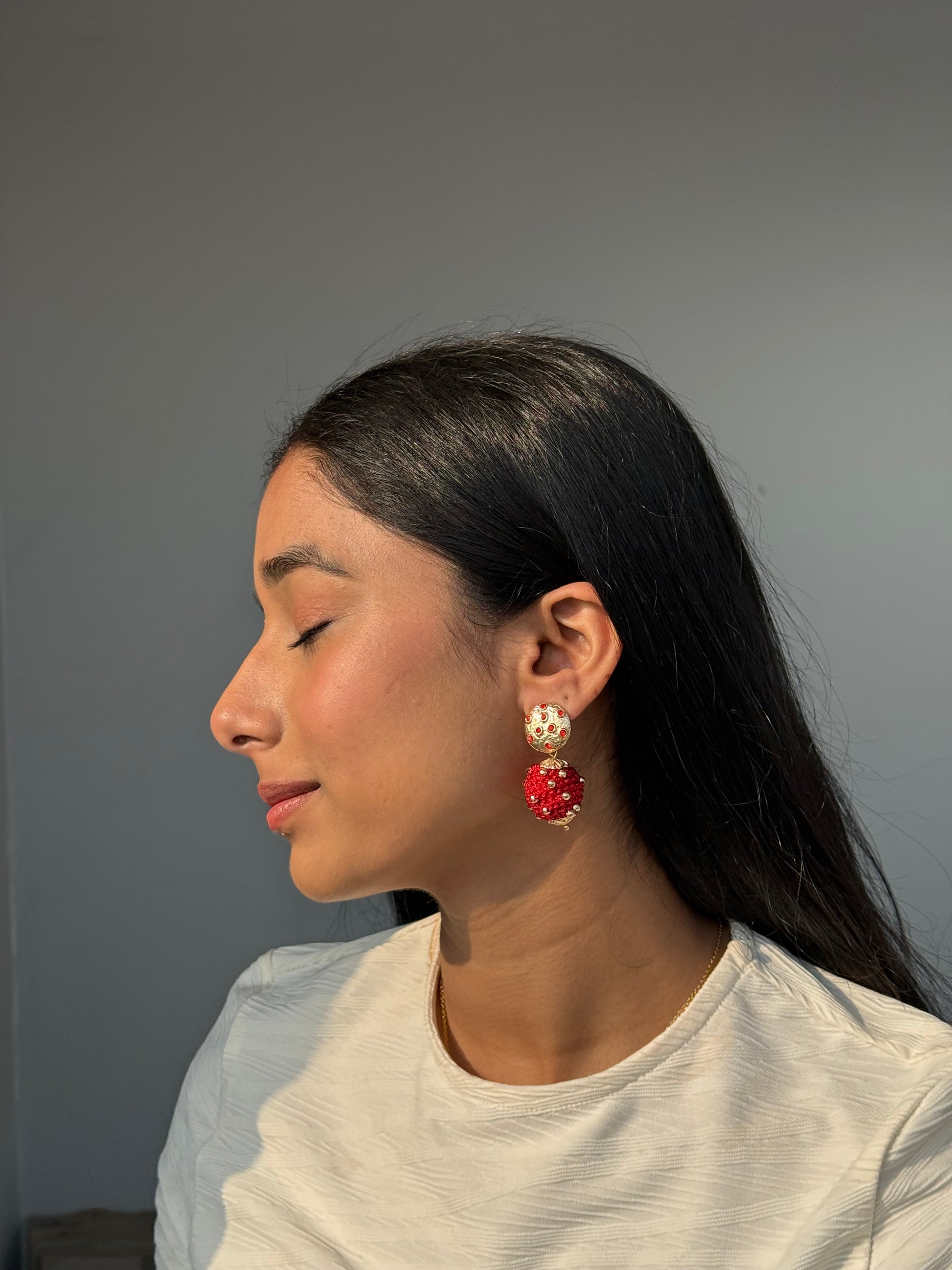 Introducing the Helen Red+Gold Drop Earrings – a striking combination of bold color and luxurious detailing: