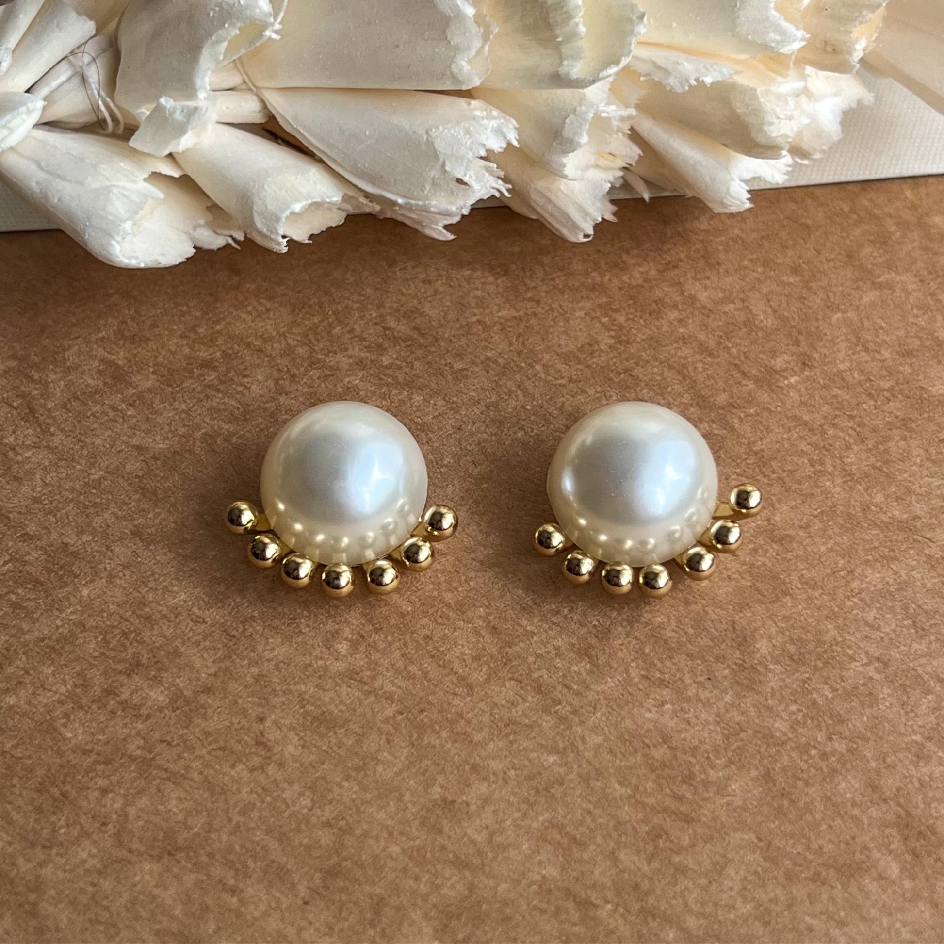 Color: Elegant white pearls with a cool-toned steel base - clean, crisp, and versatile.