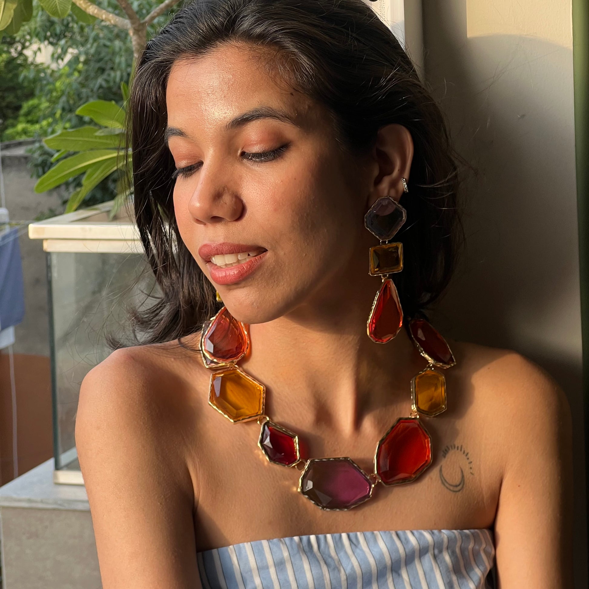 Features: Boldly curated necklace and earrings set with colourful resin inlays that pop with personality.