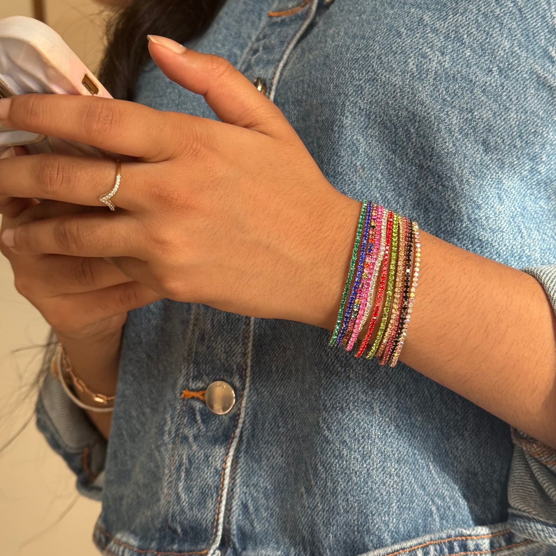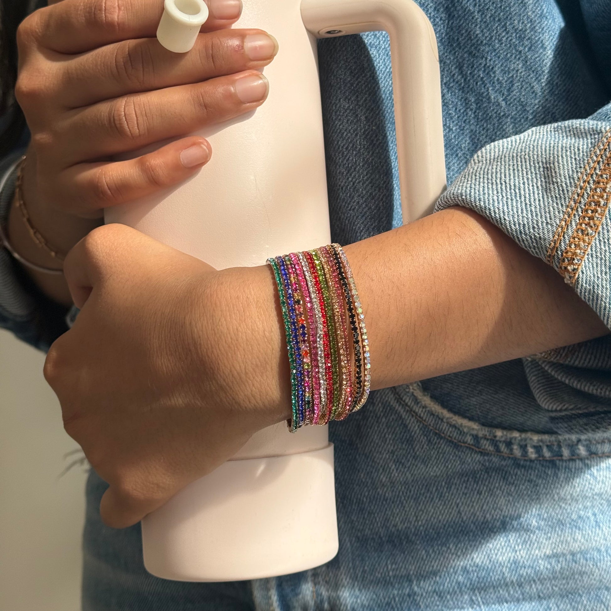 Delicate yet dazzling, this Rhinestone Thin Bracelet adds the perfect hint of sparkle to your everyday or evening look. Featuring a sleek, slim design lined with shimmering rhinestones, it a timeless piece that exudes elegance and simplicity. Lightweight and comfortable, it perfect for stacking or wearing solo for a subtle statement.