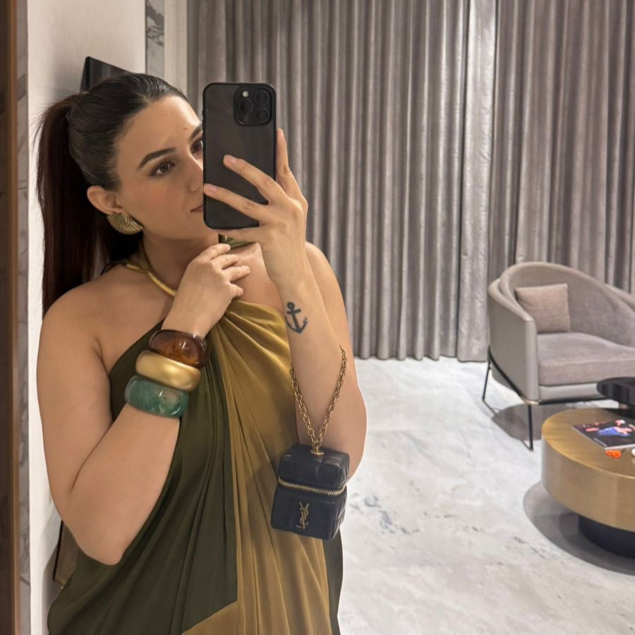 Note: The gold bangle comes in a single large size, but when styled between two other bangles, the fit blends in seamlessly and won't be an issue.
