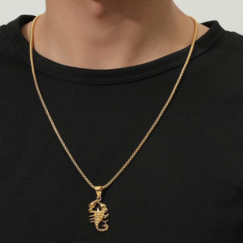 Style: Intricately detailed scorpion pendant on a sleek gold chain  perfect for men who like to make a statement