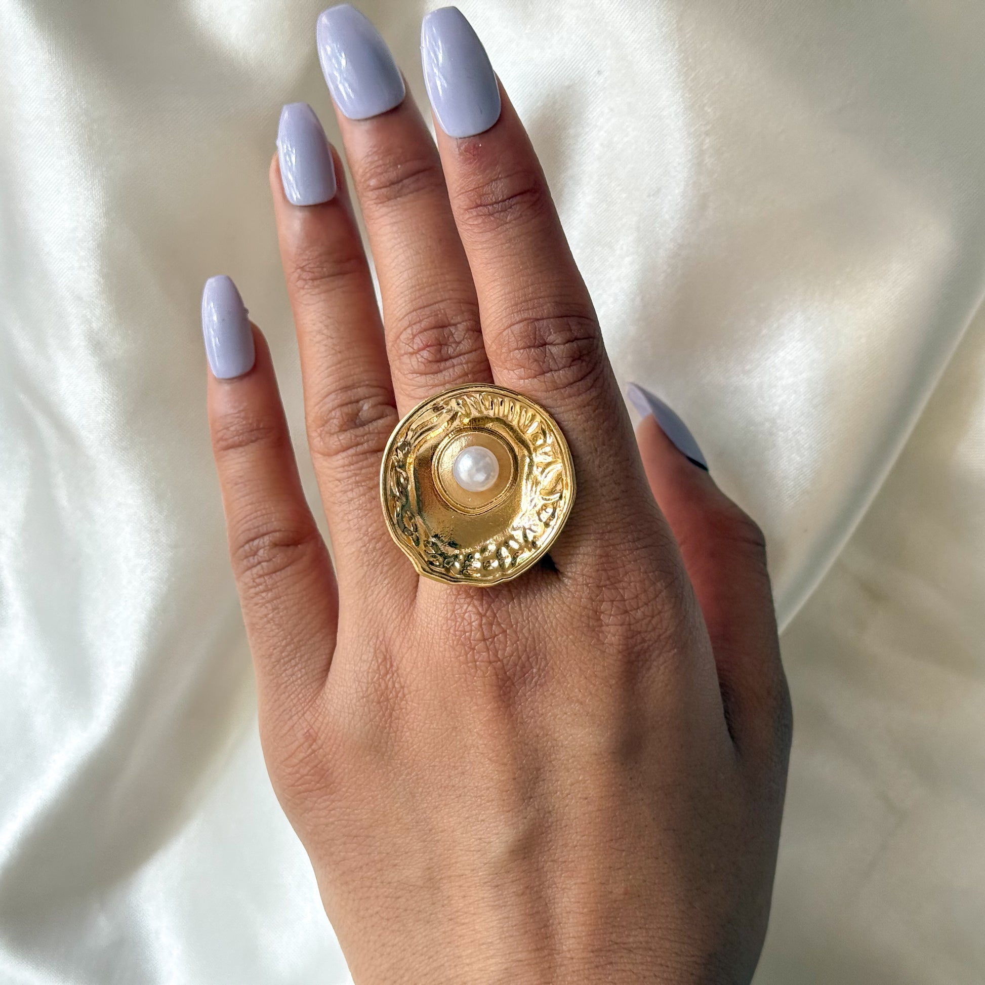 The Shell Pearl Ring is a bold and unique accessory designed to elevate your look with its chunky, statement-making design. Featuring a stunning shell pearl at the center, this ring blends natural beauty with a modern, eye-catching style. The adjustable band ensures a perfect fit, while the chunky setting adds a dramatic flair to any outfit. Whether worn alone or paired with other rings, the Shell Pearl Ring brings a touch of sophistication and elegance to your jewelry collection, making it perfect for adding an instant upgrade to both casual and formal styles.