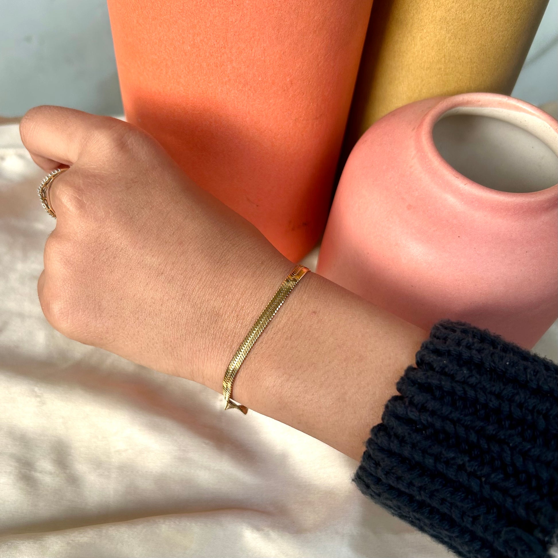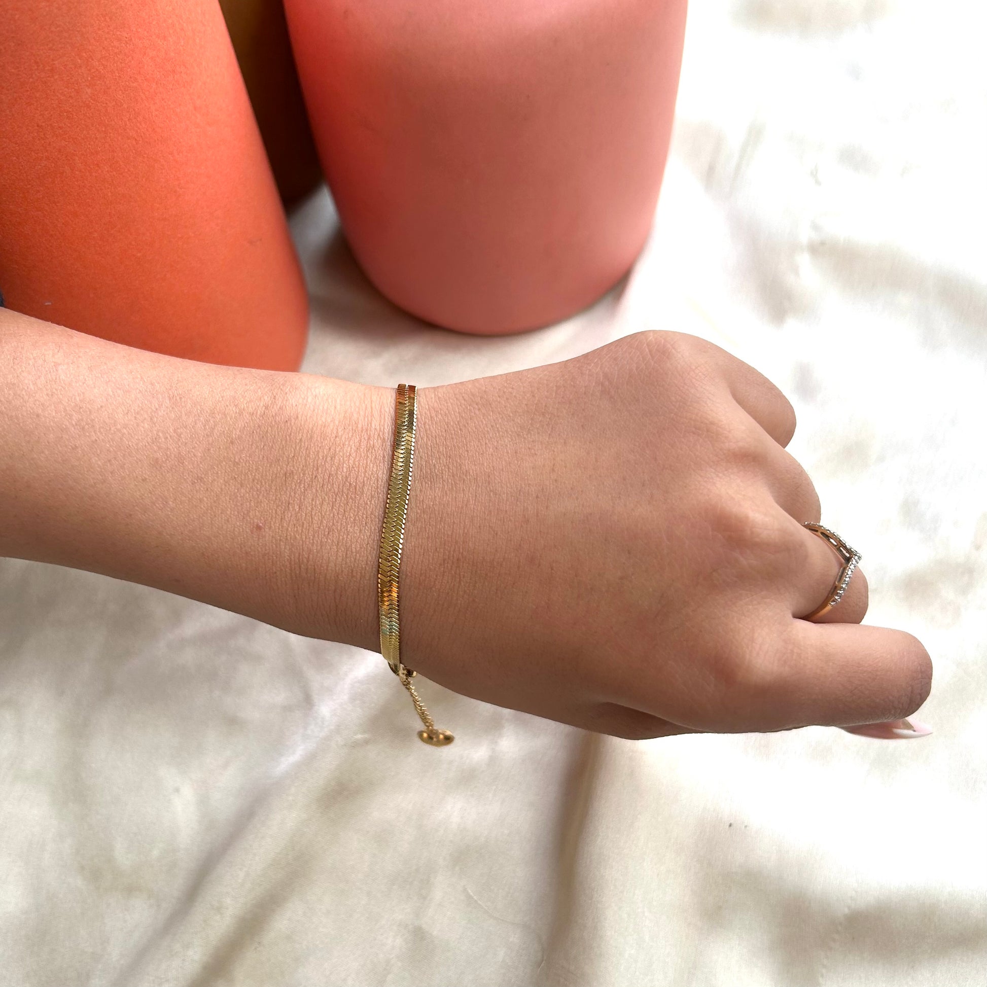 Features: Elegant snake chain design with a fluid, high-shine finish for a minimal yet striking look.