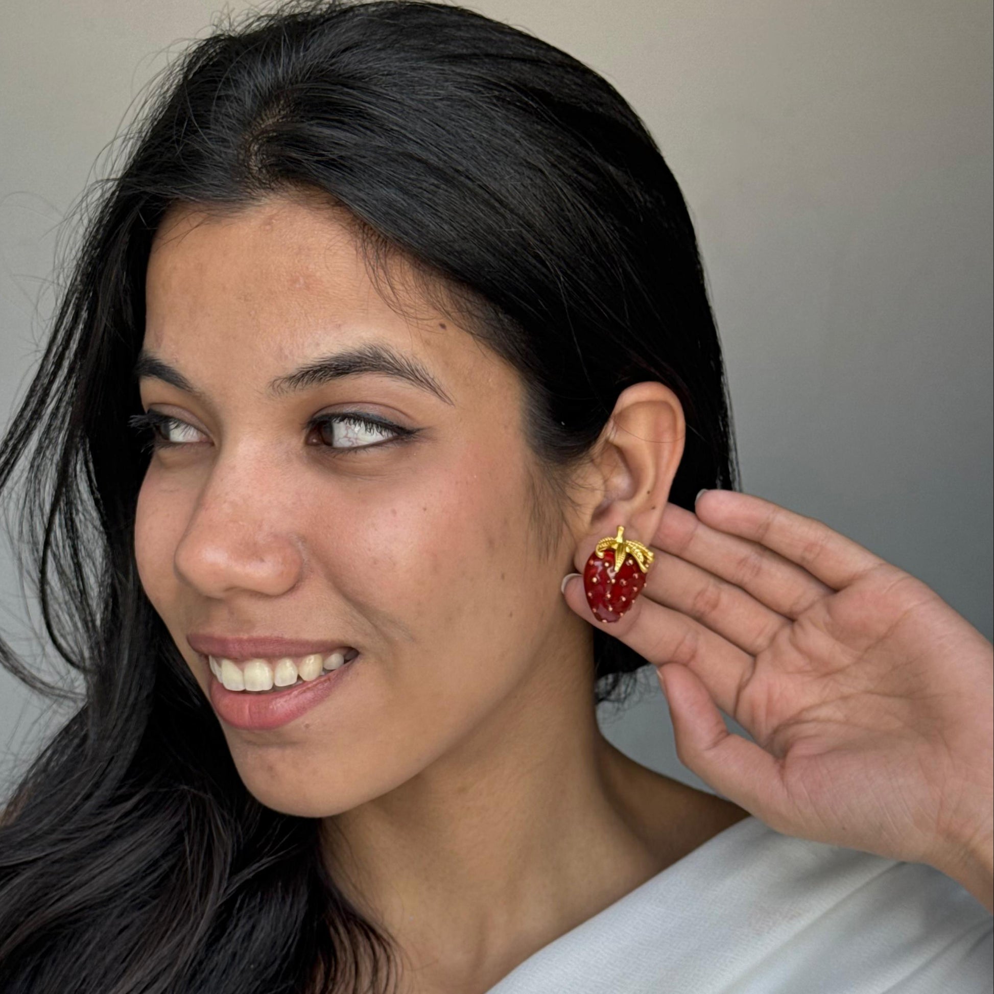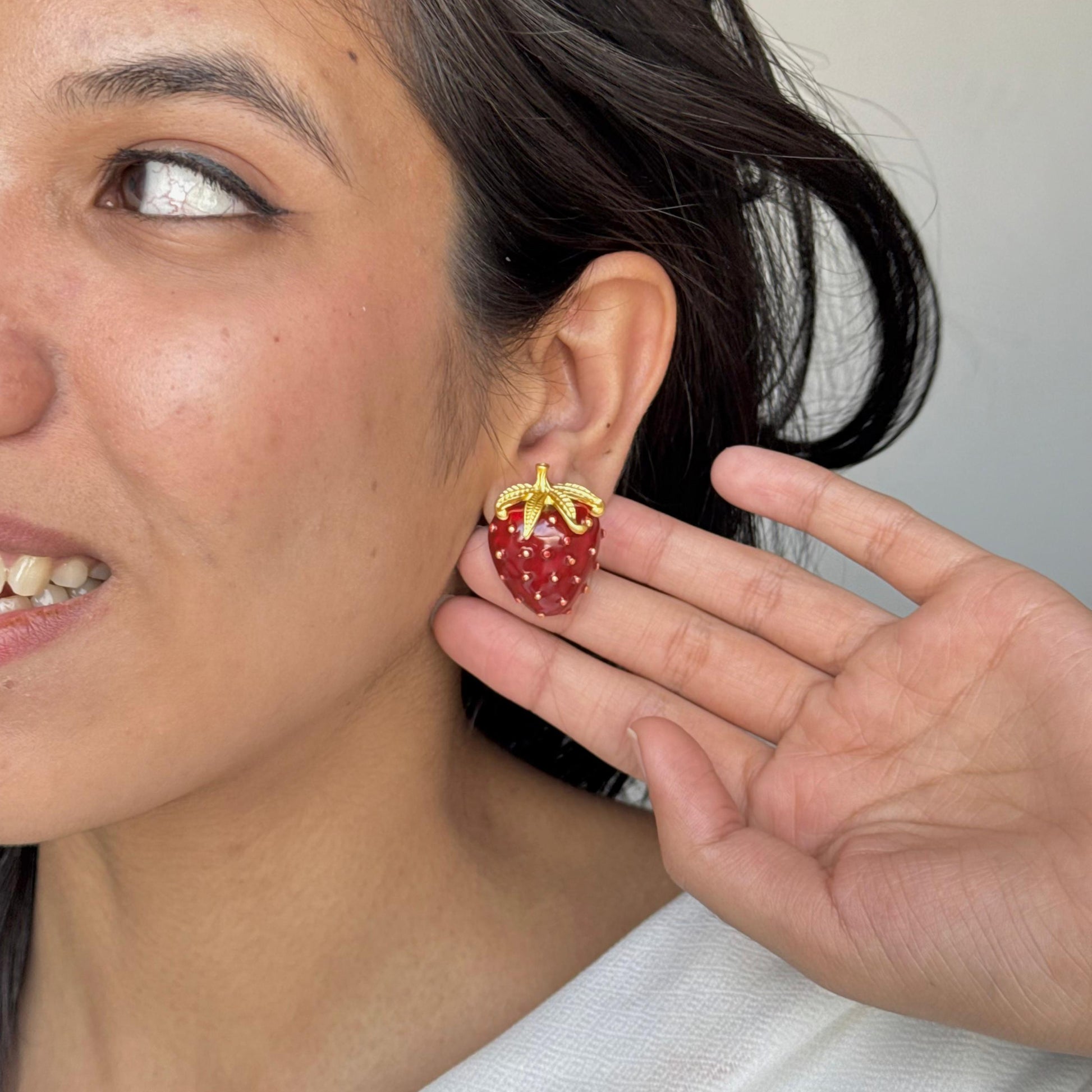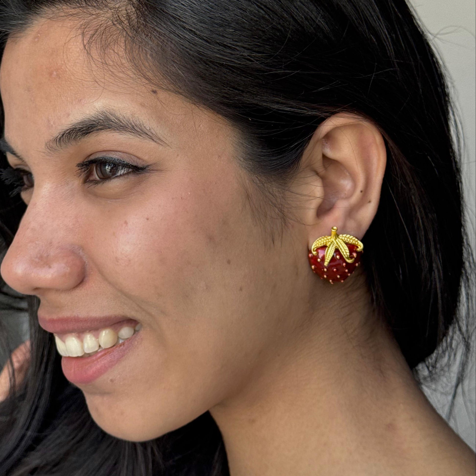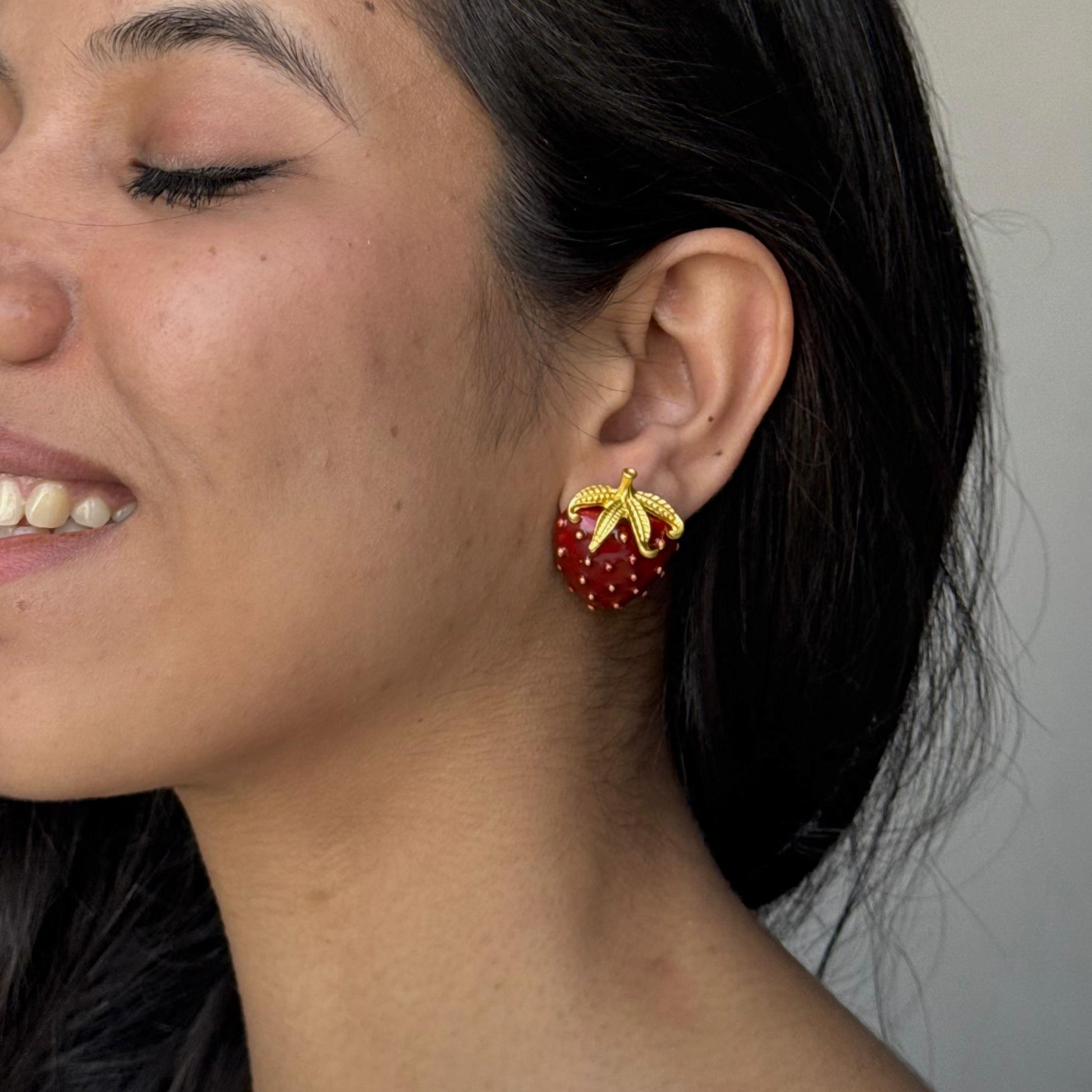 Add a sweet touch to your accessory collection with the Strawberry Metal Studs. Designed to resemble the iconic fruit, these studs bring a playful and fun vibe to any outfit. Crafted from durable metal, the vibrant red enamel finish makes them pop, offering a charming balance of boldness and whimsy. Perfect for adding a quirky flair to your look, these earrings are a must-have for those who love unique, statement jewelry.