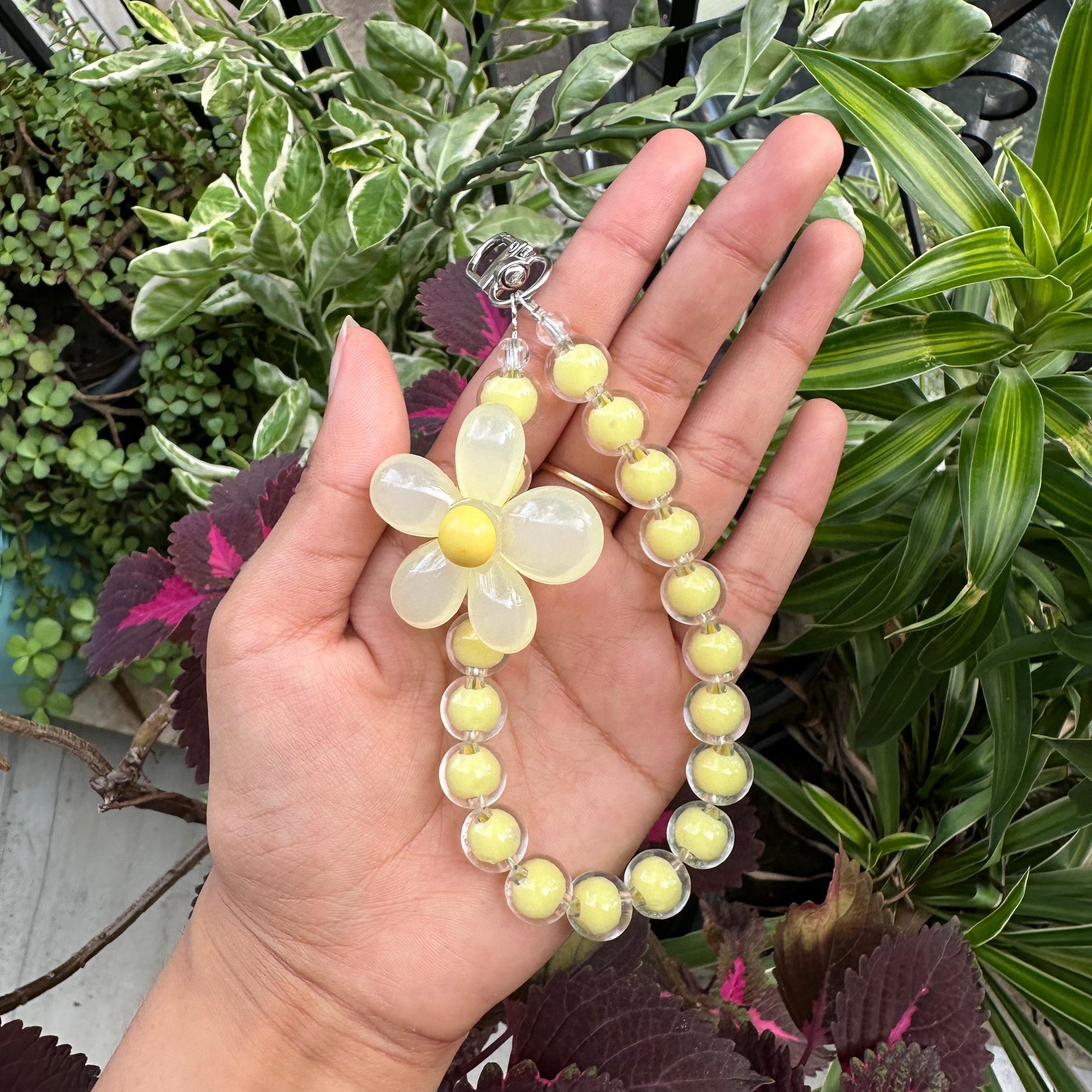 - Colour: Soft yellow with transparent bead casing and a matching daisy flower charm