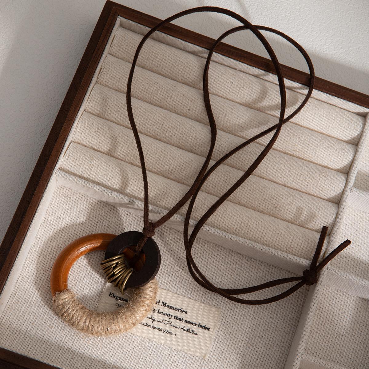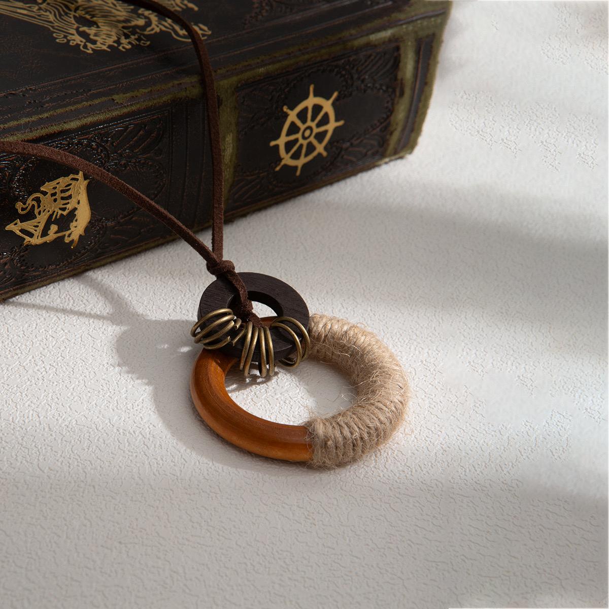 Minimal meets rustic in the Terra Loop Necklace, a statement piece that channels raw, grounded beauty. Featuring interlocked textured rings in wood tones and jute accents, all suspended from a soft, adjustable rope  it’s the definition of effortless layering.