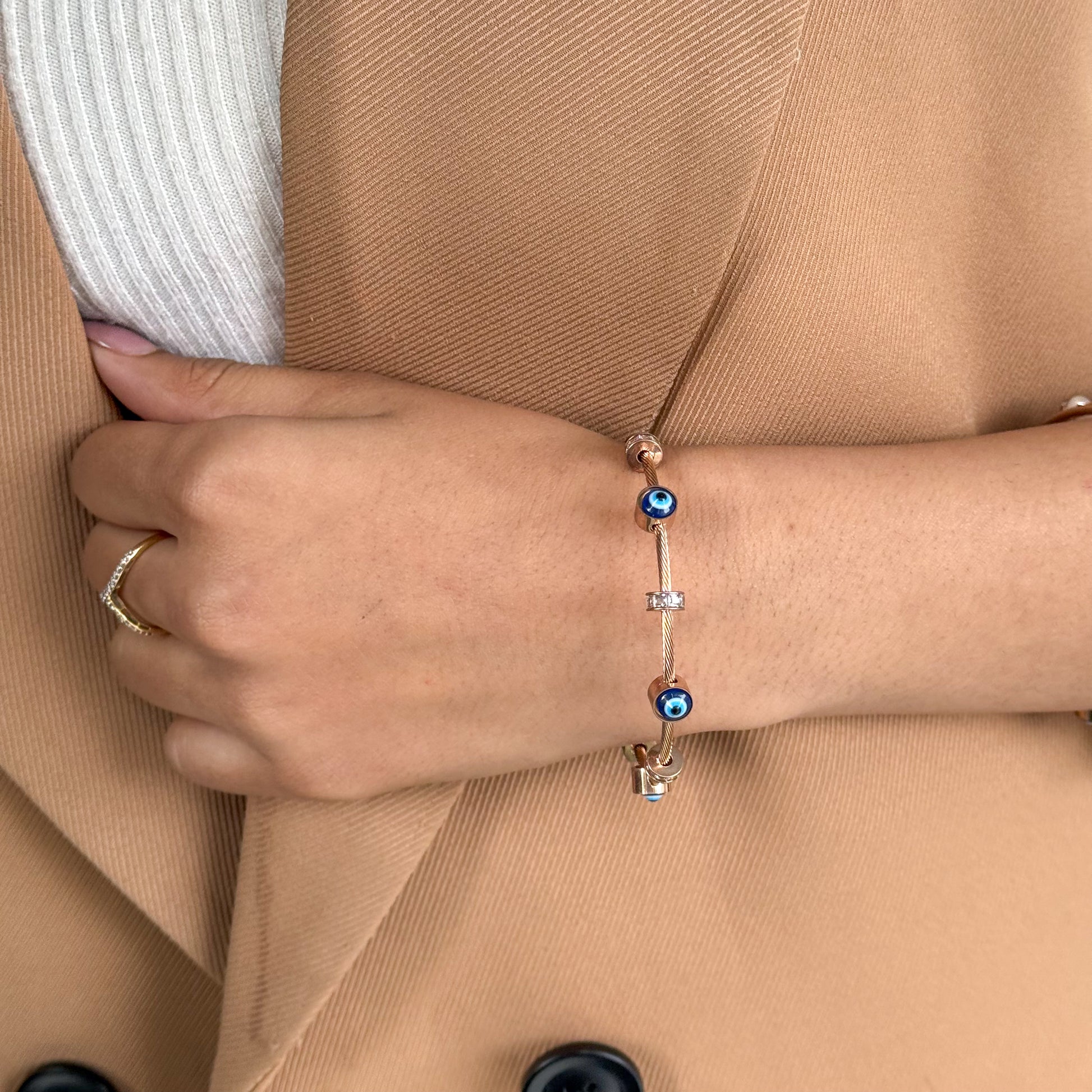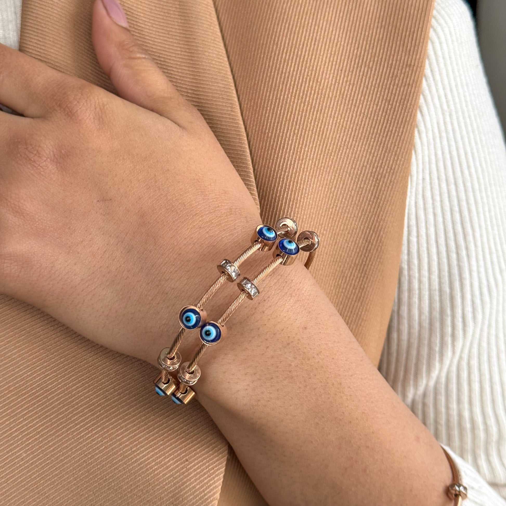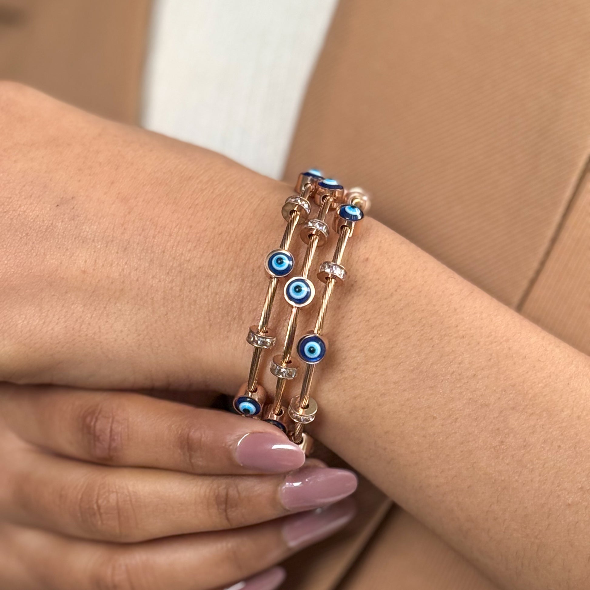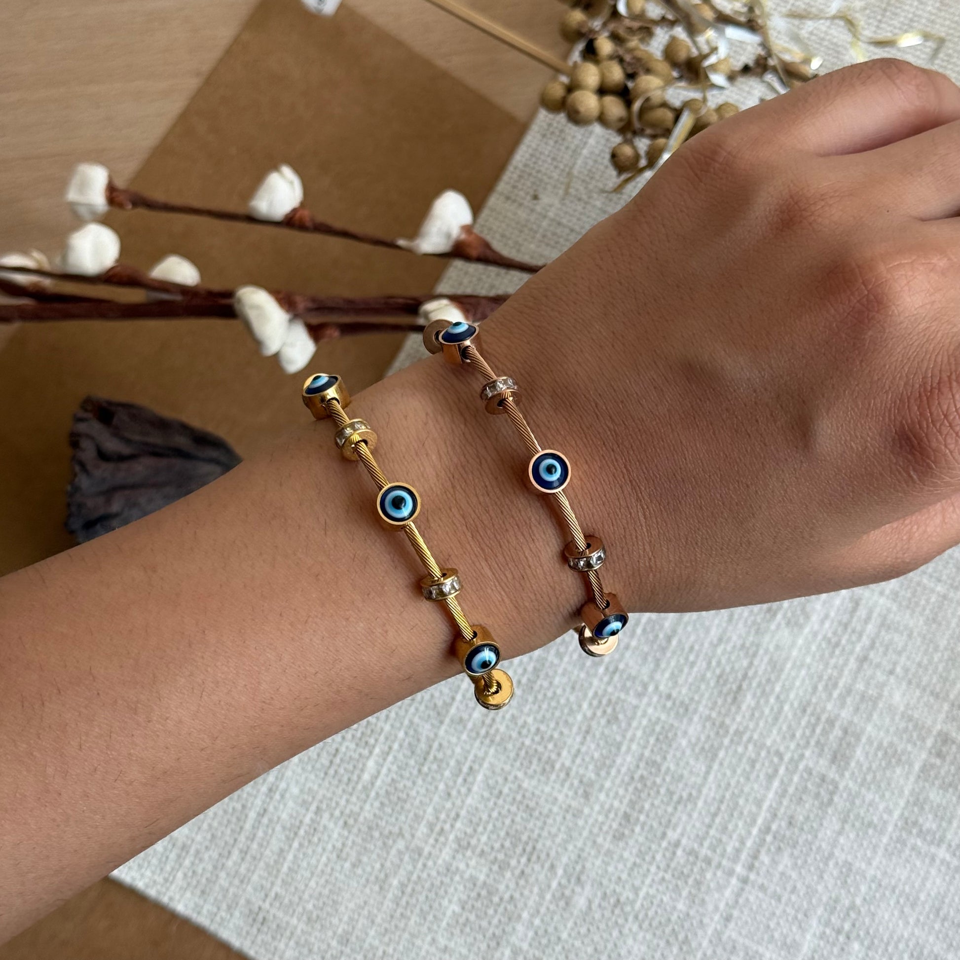 - Design: Features a chic and delicate evil eye design symbolizing protection and positivity.