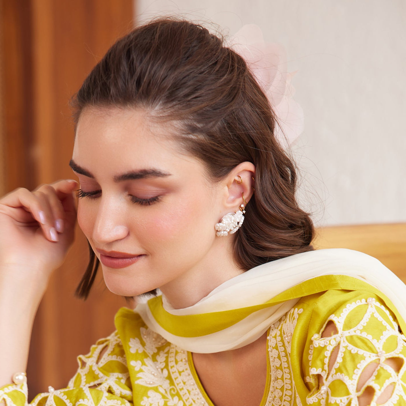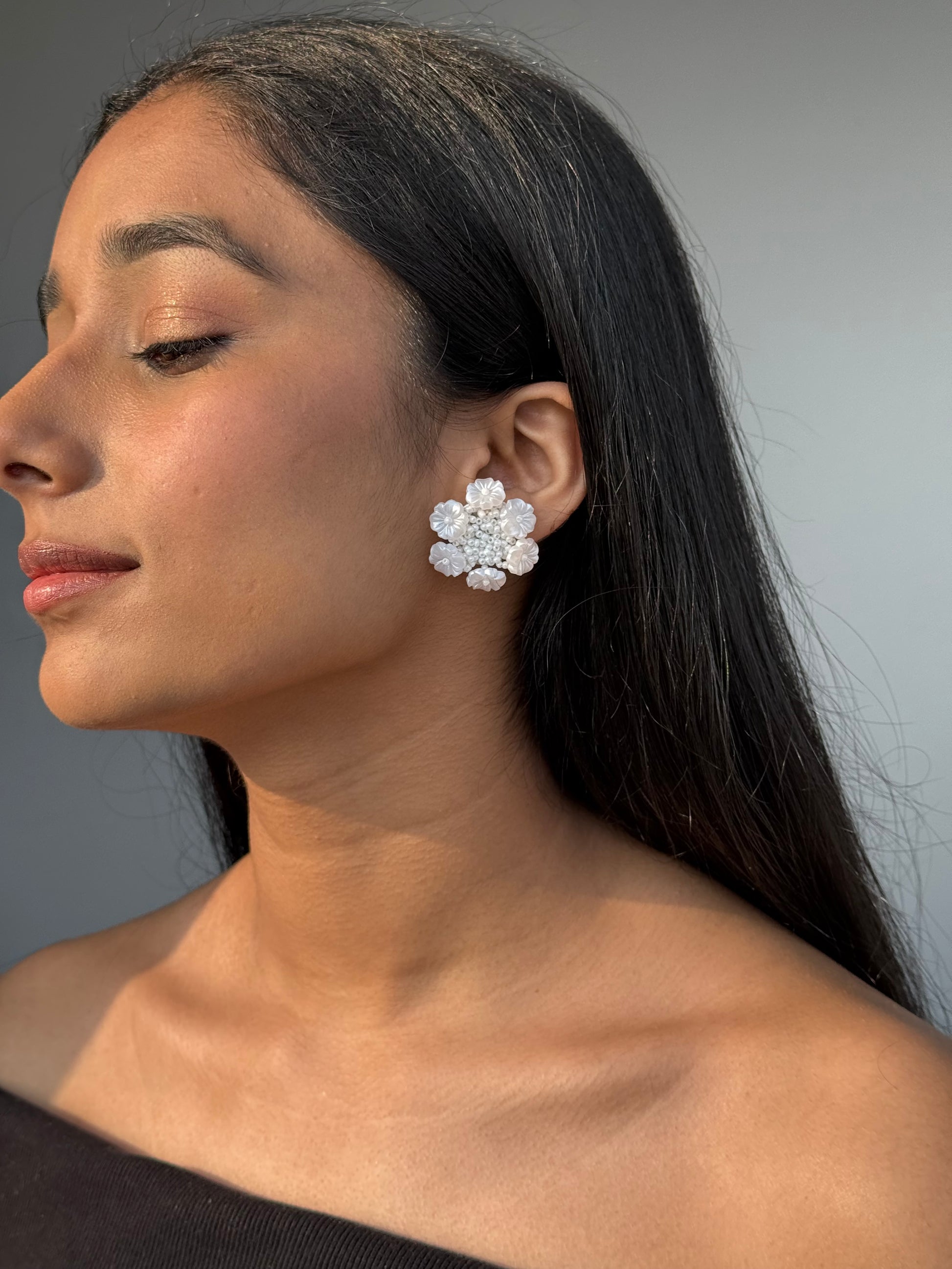 The Waheeda White Studs are the perfect addition to your jewelry collection, offering timeless beauty and endless styling possibilities.
