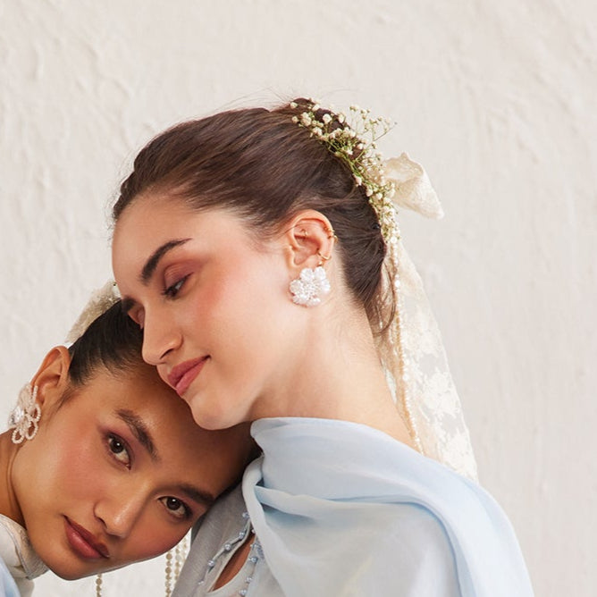 Introducing the Waheeda White Studs – a lightweight, versatile statement piece that can be styled in countless ways: