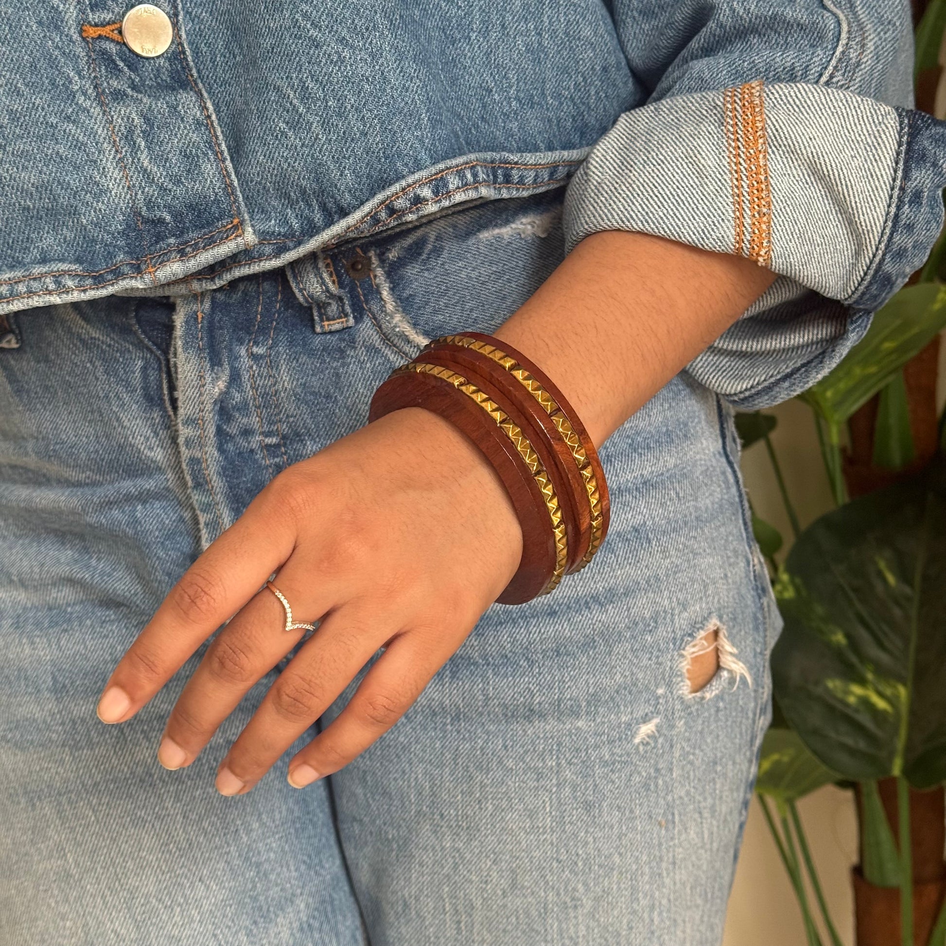 Rooted in tradition and styled for today, these Wooden Bangle Set is handcrafted from richly wood grained known for its strength, durability, and warm, natural finish.